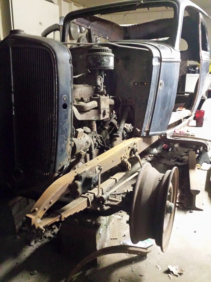 Drivers side fender removed for blasting and primer. Found previously repaired (well done) damage underneath two coats of paint & primer and rust. Moving on. (My daughter wants to leave the fenders off.)