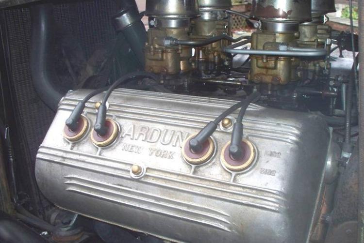 ORIGINAL ARDUN HEADS WITH FRONT WATER OUTLETS,4 X 2'S, C & T'S REMAKE OF ARDUN MANIFOLD, WITH CARBS MOUNTED SIDE WAYS AND CARBS BOWLS FACING OUT ON EACH SIDE. CARBURATOR SHAFTS CONECTED TOGETHER ON EACH SIDE AND THERE SPECIAL LINKAGE. KURTEN AIRO-MOTIVE DISTRUBATOR W/ TWO COILS. TUBE HEADERS REBUILT.