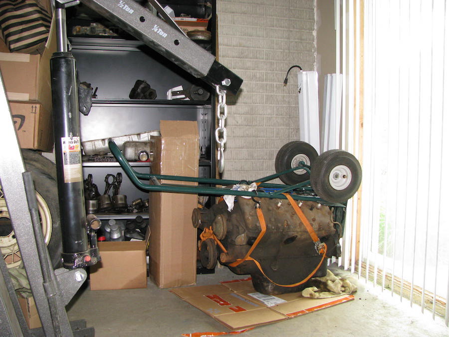 Speaking of steering boxes... I found the thread that talked about using a mount from a '50s VW bus to put an F1 steering box on top of the frame. The place they mentioned to get the part went out of business a few years back though, and none of the usual suspects from my VW days listed the part. Late that night I posted a call out to the local aircooled VW crowd and in the morning I had an email containing a link to exactly what I needed. It was on a site I had checked the day before, but the ad was put up the following morning. Long story not much shorter, it's on it's way! One part found. Then I found an ad here for a shift lever that should fit my sans lever 1938 transmission. And it was local. Score! Picked it up this morning, one more part found. When I got home from picking that up, I decided today was the day. The flathead needs to get moved from my garage to my walkout basement/shop. That entails going downhill, then across the hill, then back up it. I was NOT looking forward to doing this since I wasn't exactly sure how I was going to make it work. I decided to start simple and use what I had on hand. A two wheeled dolly that I've abused greatly over the years. It seemed the only way to get it to remotely fit was to put the dolly over the intake area of the engine and strap everything down. So I started pulling parts off the engine. Here's what it looked like under the intake manifold. I didn't realize Ford cast these blocks out of lava... Yikes. In other news there were no thermostats under the housings, and there is definitely rust in there. So... you know those times when you're going down a path with something, and you're thinking "there is no way this is going to work..."? This is one of those times/plans. I figure worst case I'd get it onto the hill, everything would go south, and I'd end up dragging it through the yard with a come-along. So what, today's the day, it's getting moved one way or another. The first 90% of the move went much better than I expected. Zero issues. Ok, there were a couple times the engine almost took over and shoved me down the hill instead of me guiding IT down, but you have to expect that. The last 10%? The back up the hill part? I used to be much stronger... it took several steps. Stopping to rest and bitch about gravity. Finding a lever and some wheel chocks. Contemplating hiring a Bobcat, that sort of thing. But in the end I finally got it to the threshold. And couldn't get the wheels of the dolly over said theshold, so I dumped it onto it's already much flattend pan. Done! When I go back down there, Mr. Engine Hoist can take car of the heavy lifting from now on. And my plan of bulding the engine in my basement over the winter, then making a dolly specifically to move it back up the hill? Screw that. This engine will be built in the summer, in my garage, where it will stay until the car is rebuilt in the garage. Once that block leaves the basement for cleaning machining and whatnot, it's not coming back down. Earlier this week I put the main leaf back on the rear axle. The plan is to put the other leaves on it, reinstall it in the chassis, then drop the engine/trans in place and see how everything fits. My goal was to have the front and rear suspension in place, the engine sitting in position on the crossmember and engine mounts, and the body back on by the 4th of July. Now that the engine is in the shop, I don't see any reason I won't make it. I also got the tap, drill, die, and die holder to mod the tie rod and hairpins, so maybe I'll make some headway on that stuff too.