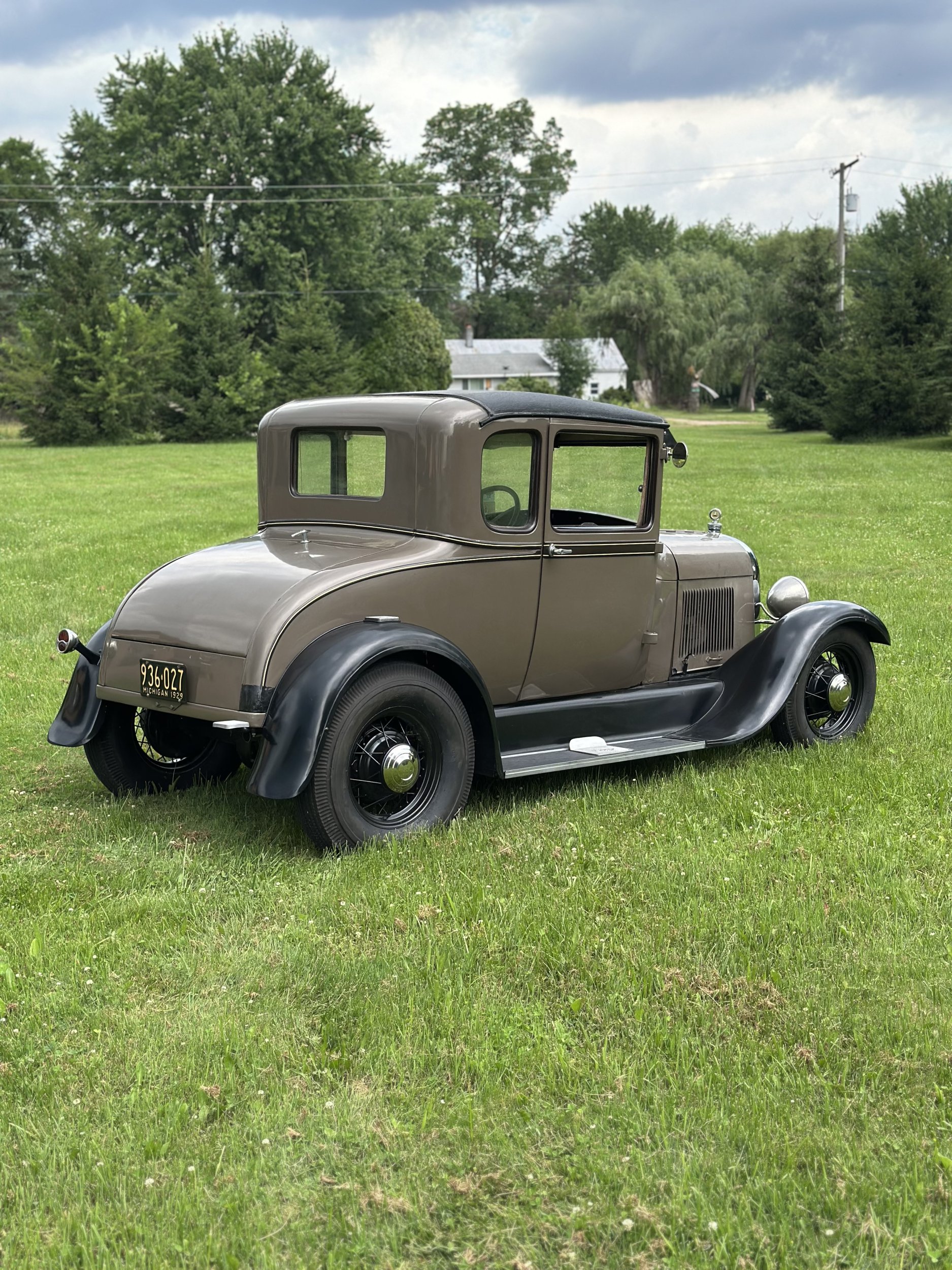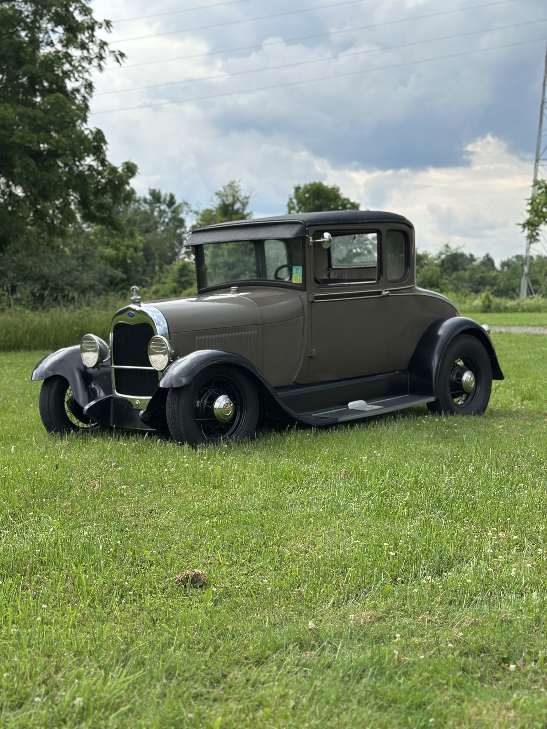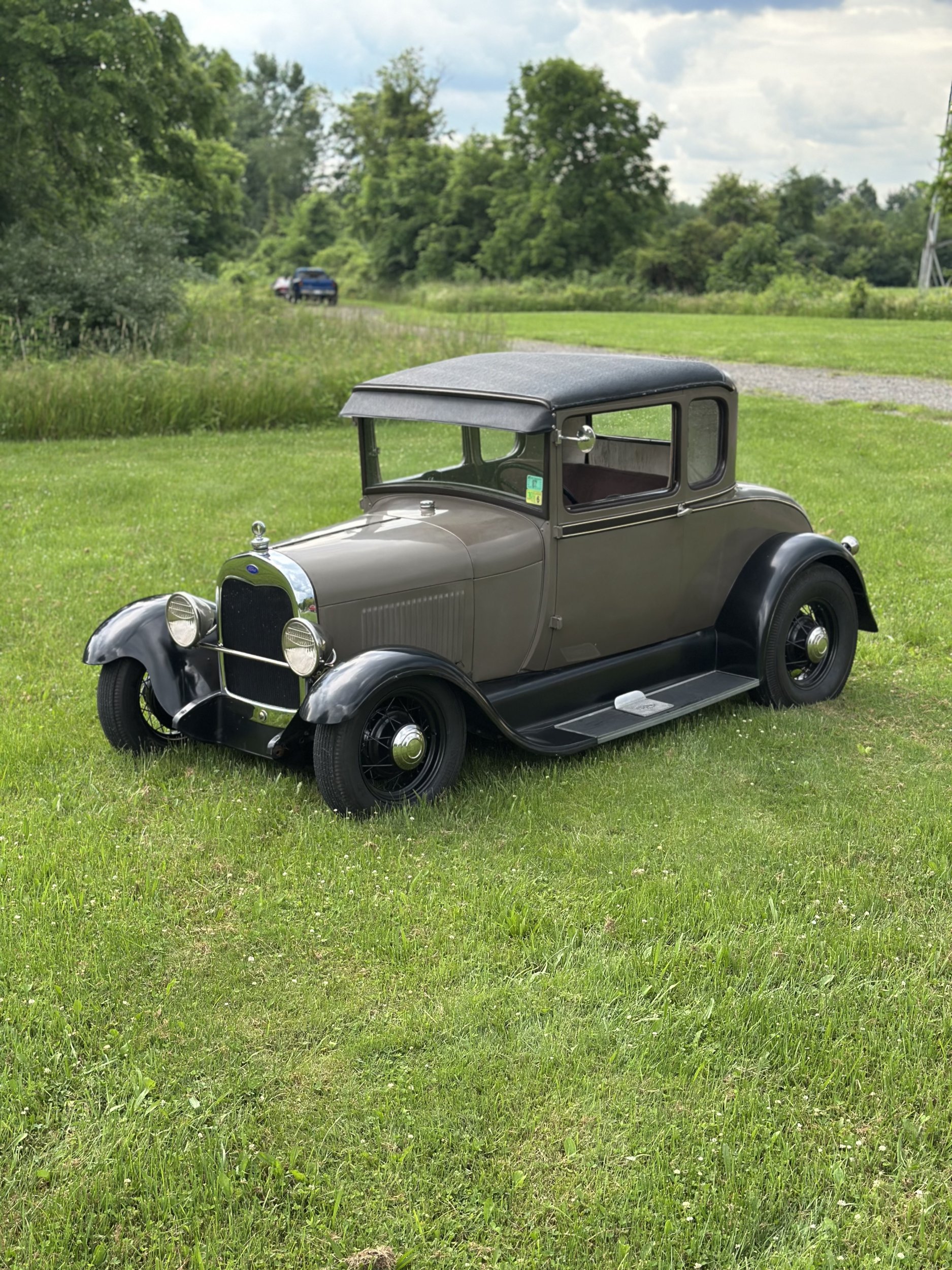 Selling my 1929 Model A coupe, this is a great model a hot rod for around town! Solid body and frame, the engine is a 4 cylinder flathead with high compression head, down draft carb, hipo exhaust manifold, FSI electronic distributor and leak less water pump. This car also has a new stainless exhaust with a smithy muffler, dropped axle with new spring and fresh front end parts. New rear main leaf spring and mechanical brakes. Brand new big and little tires all around on 16” wheels. This is a great traditional hot rod with a mean look to it. $24,000, located in Belleville Michigan.