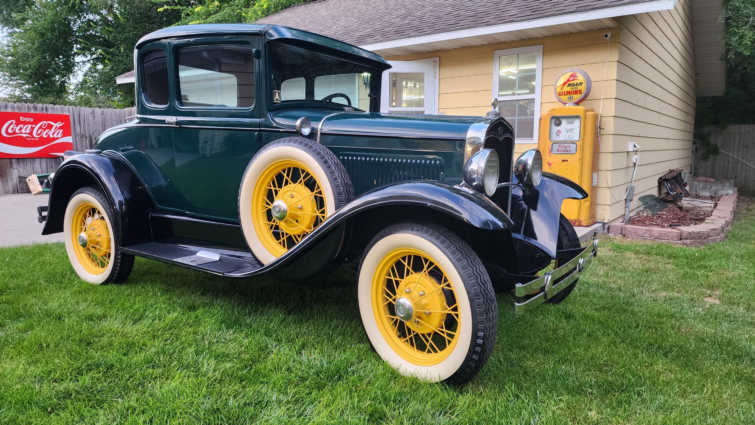 1931 Ford Model A Coupe. Good running engine. Brakes and tires are in good condition. It was restored in the 80's and has fiberglass front fenders and visor. Rear fenders are steel but I believe they are reproduction. Paint is in fair condition with some scuffs and scratches from use. I do not see any indications of patch panels being installed. Turn signals have been added and the cowl lights act as front indicators. It did not come with shocks but drives fine without. It does have a new radiator. I have a rock guard for grill and tote full of extras that come with it. I may be able to transport for reasonable fee.