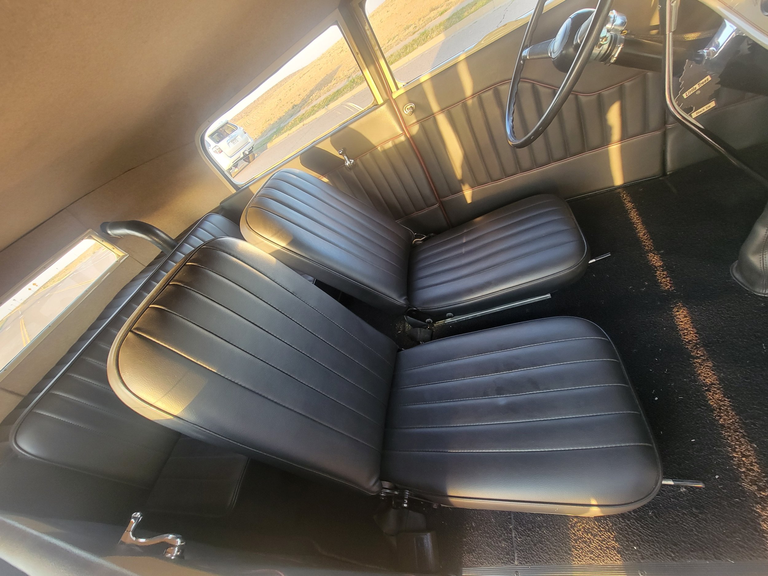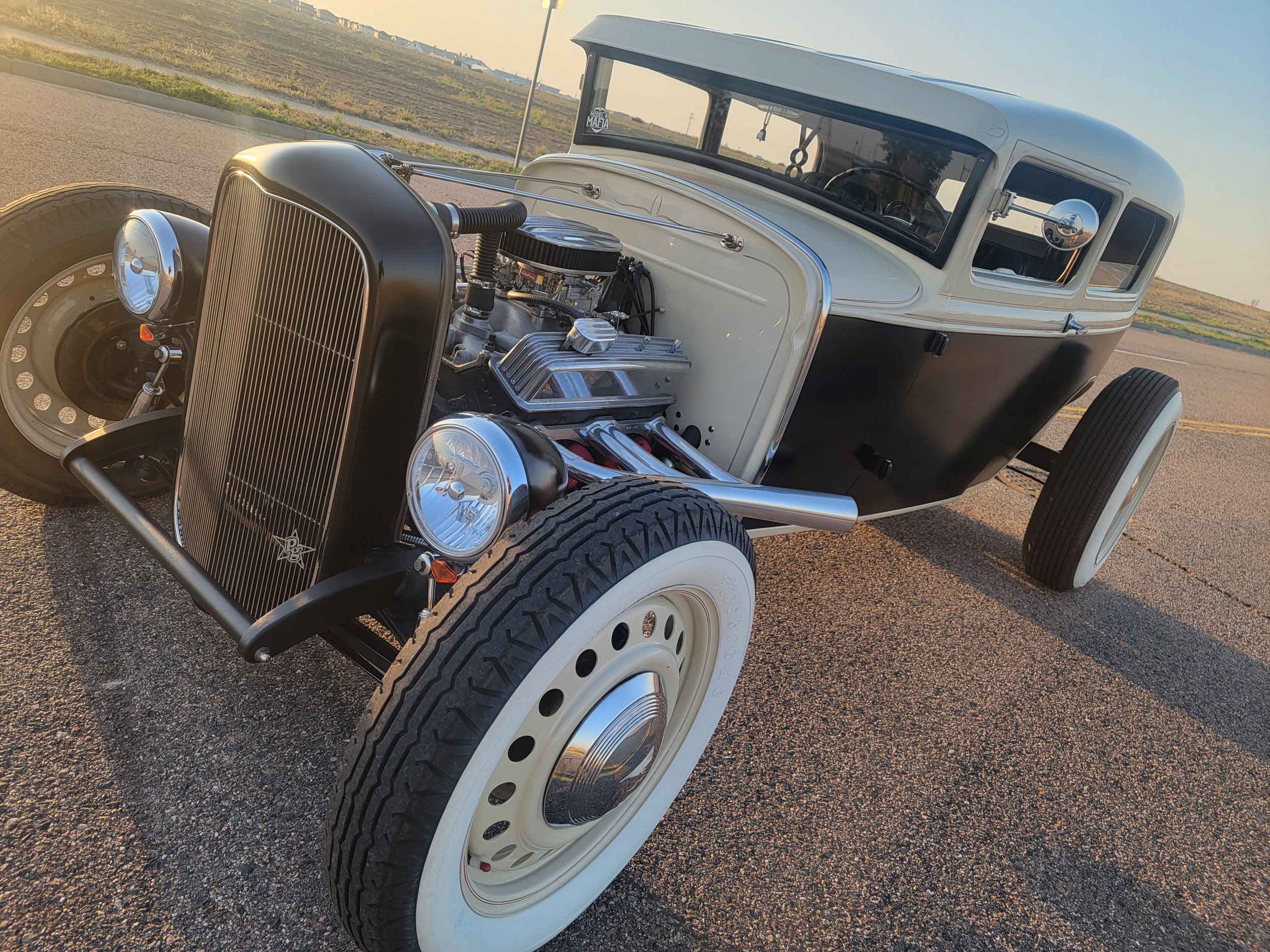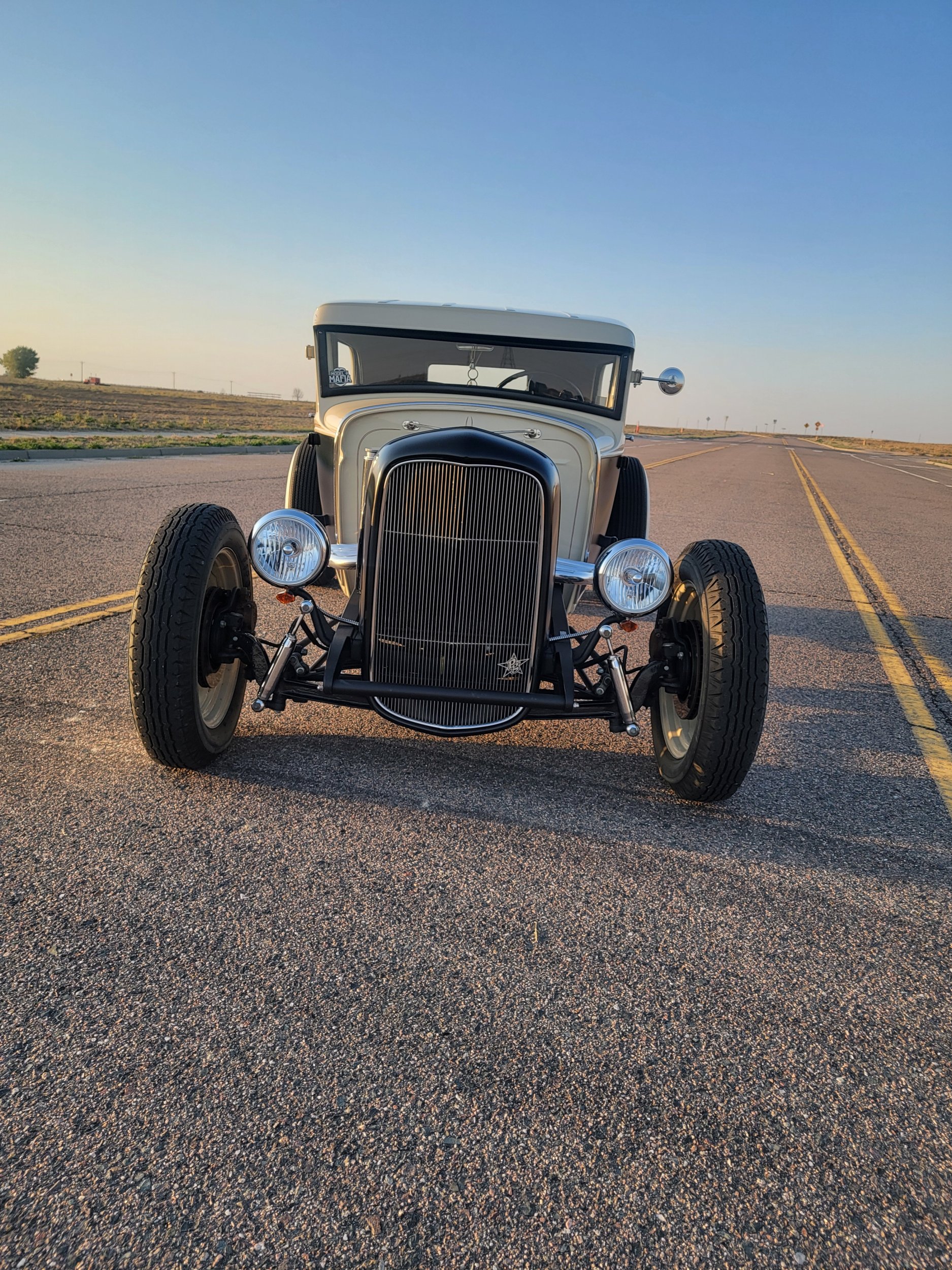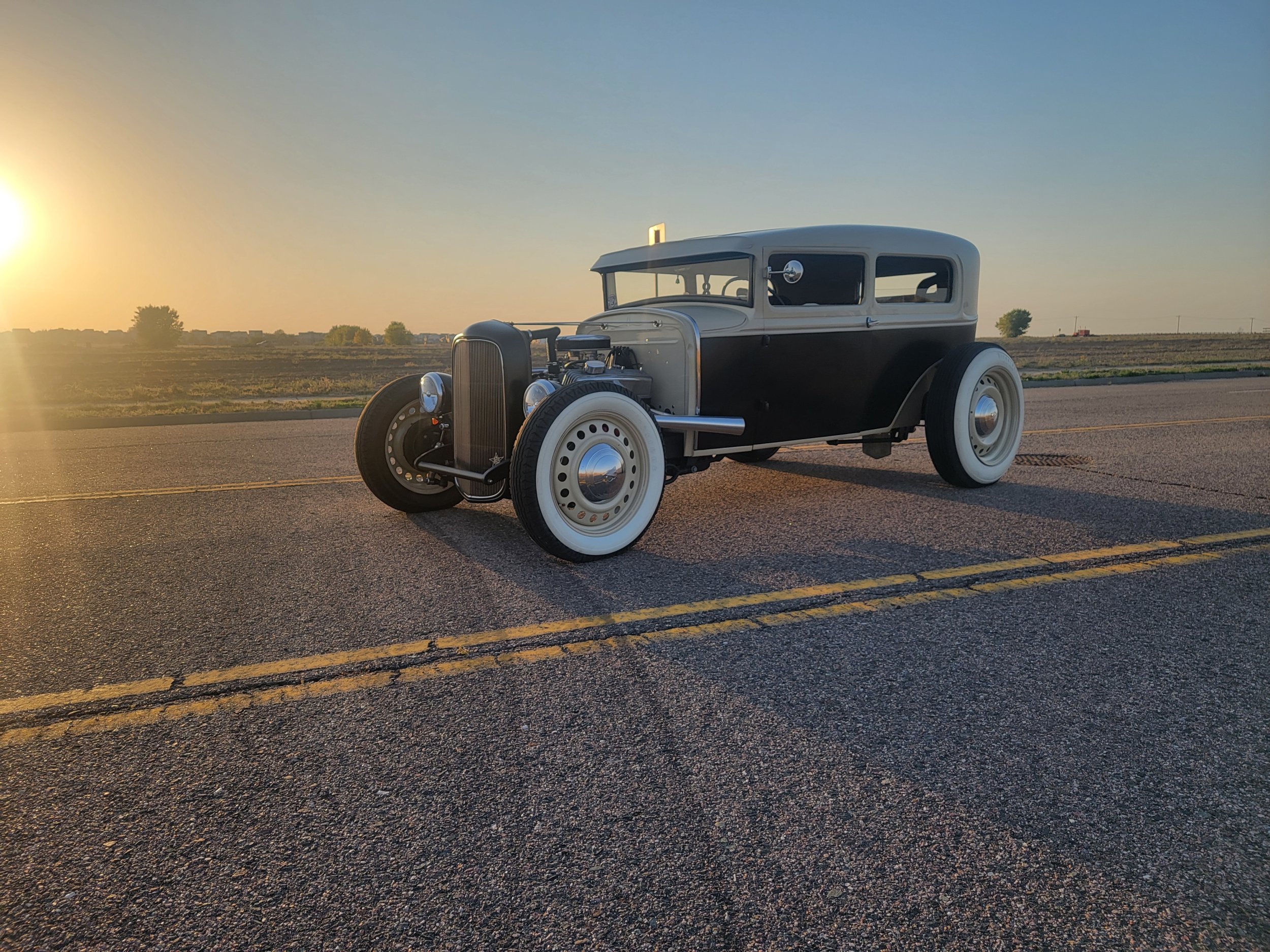 1931 Ford Model A Tudor Sedan $40,000 OBO 350 SBC 3 speed automatic transmission with lokar shifter- does not come with V8 shift knob Patriot headers- no baffles Chopped channeled Front disc brakes Rear drum brakes All windows roll up and down Built back seat Artillery wheels- 20 inch back, 18 inch in front Removable steering wheel Pop out windshield Seats are adjustable Beige and satin black paint- newly added pinstriping Has some hairline cracks in paint as it was painted in 2012, but overall very good All lights work, inside and out Turn signals and horn work Blue dot tail lights Colorado 303-513-0660- Matthew Only selling to fund a different project Will entertain trades for the right car. Has to be classic car Pre 1972 YouTube video:
