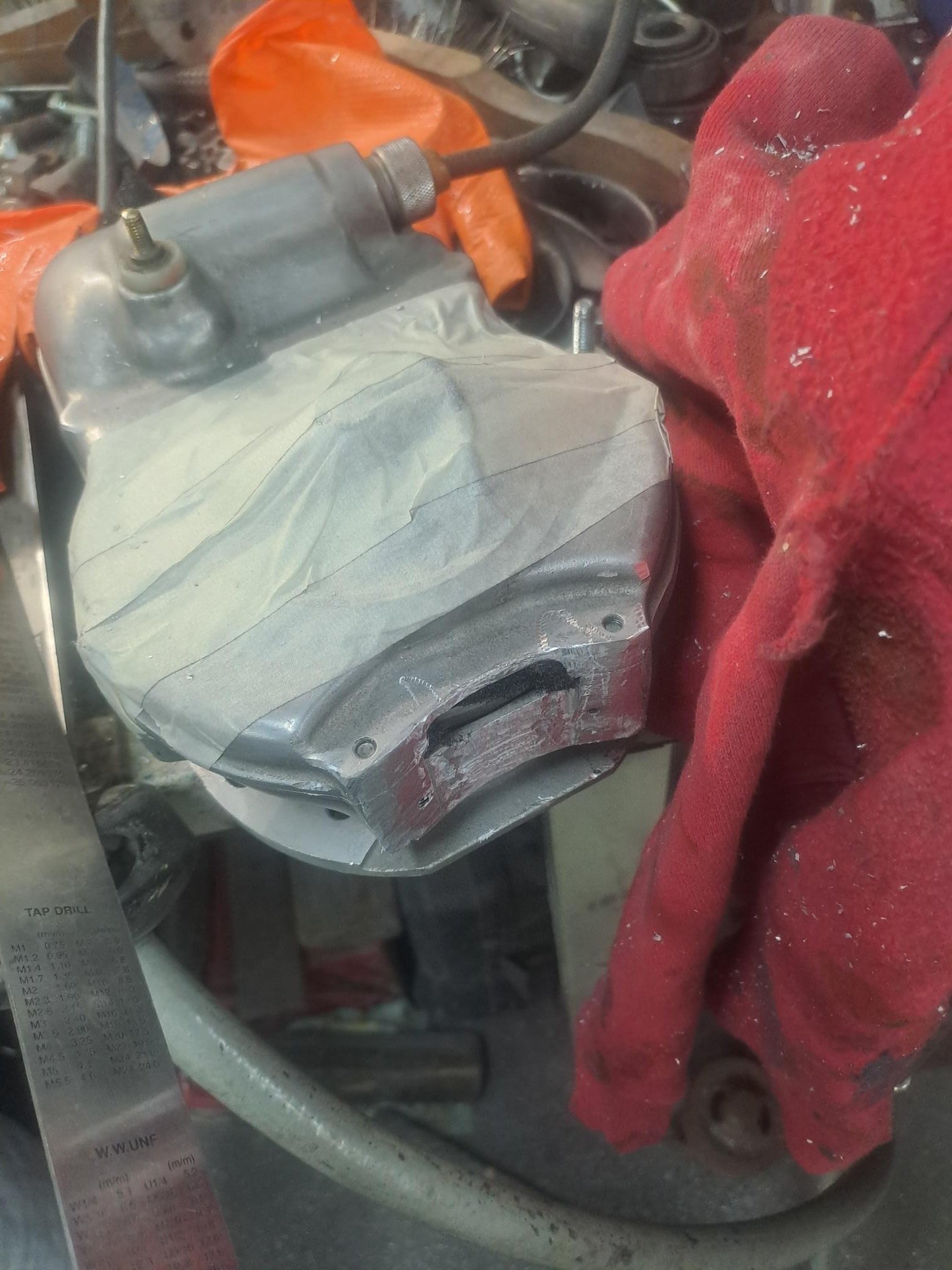 Front brakes are ready. - 2mm shim between inner bearing outer cone and hub. - 12mm sleeve between inner bearing and spindle - cut 4mm from backing plate edge before painting - lathe 4mm from drum inner sufrace - New bearings and seals. - painted drums. VHT silica high heat ceramic spray "cast iron". Now turns good, approx 2,5mm (0,1") cap between drum and backing plate. Also started to sand epoxy primer. One door ready for primer. I ordered from Italy some tensioners to our industrial customer. To same shipment for me 60mm x 60mm belt tensioner roll with bearings + alum. arm. Im gonna use those with my 1936 M-36 McCulloch supercharger. Roll 15euro, bracket 15euro. Not bad at all. AULIS