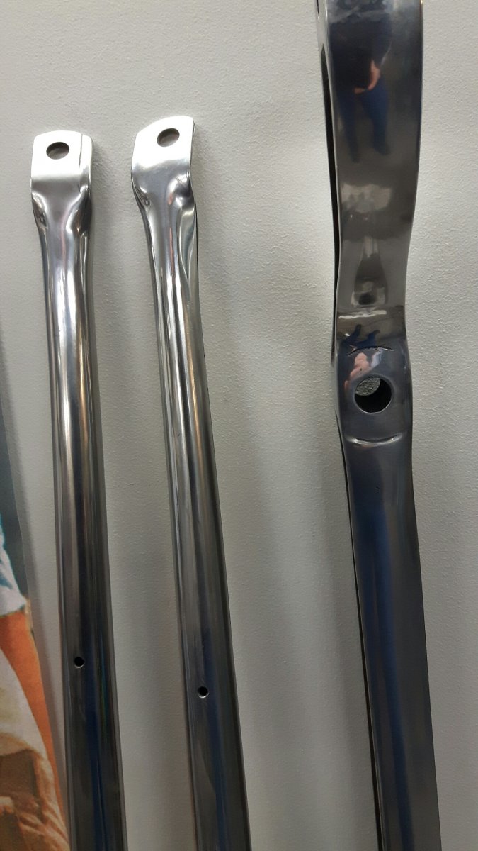 Radius rods sanded and polished. Final sanding 500 and polishing (heavy cutting). 2 x 6hours. RH radius rod was little curved, but get it pressed straight. Same time TIG welded upsides. Next front axle and last front wishbone. I send all those parts to Cromium plating. Aulis