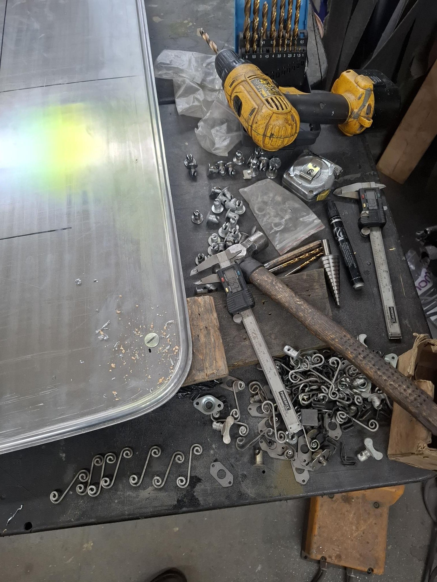 Thank You. Today 7hours without any breaks. Now Aircraft Dzuz are working fine. Still need to fix panel. I wait that Oskar son is come here. I need to roll panel (english wheel) over. Now You can see there when I have stop rolling halfway.... Fron edge need to hammer down.... Im gonna paint panel semi-gloss black. Same 2K acryl (40% matting base included) than have painted brakes, steering parts, intake manifold..... Aulis