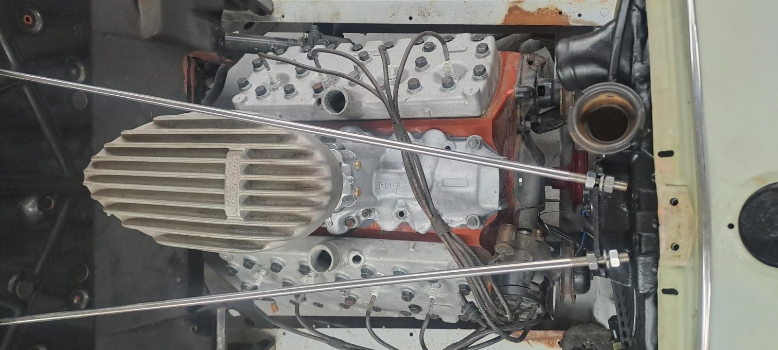 Engine is 304cid with thickstun heads, thickstun intake, mallory dual distr, 4.25"stroke crank, H-beams, Ross pistons, hot rod cam, 1.55" valves,... basic engine is 1952-53 mercury.