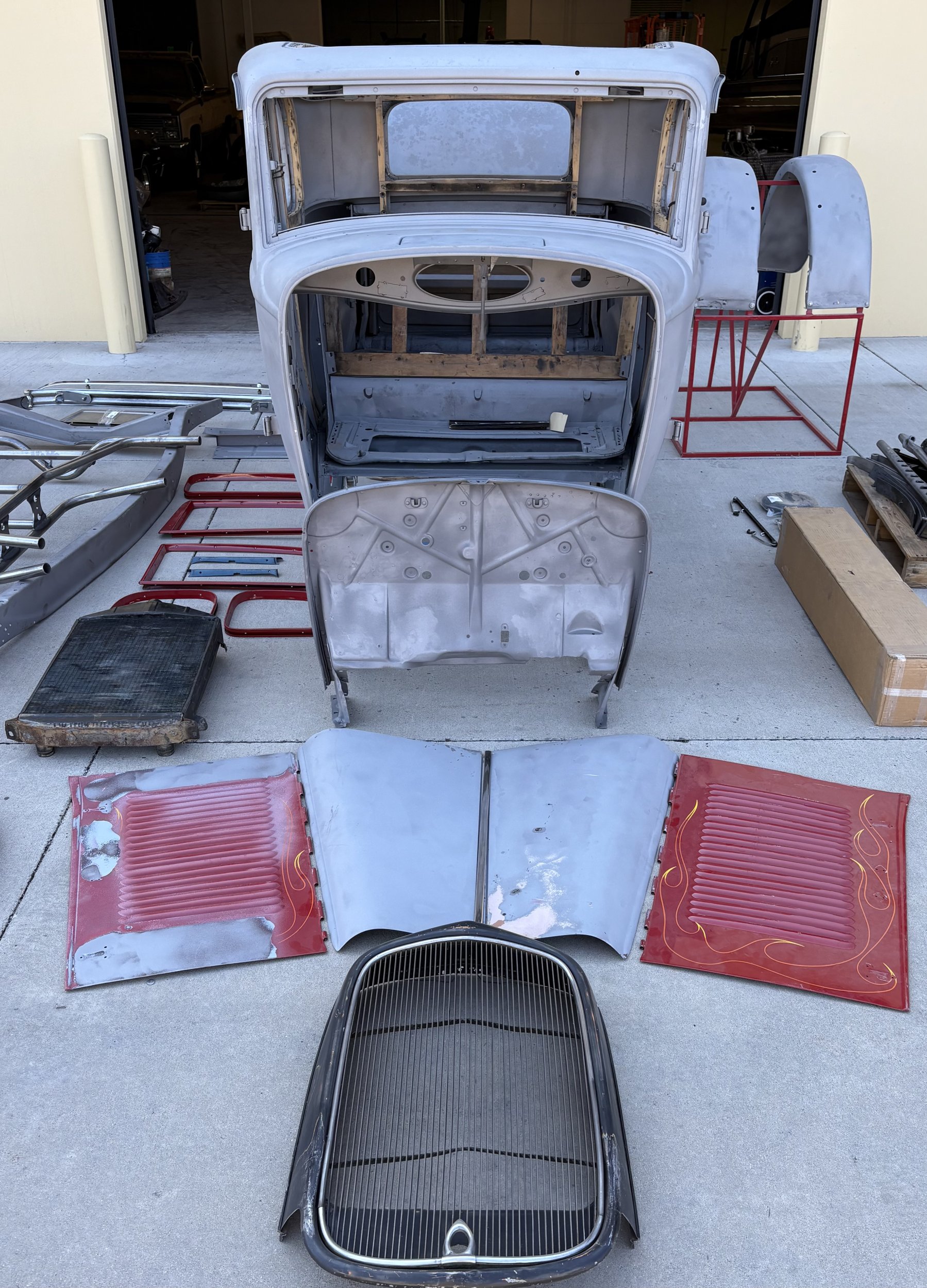1932 Ford 5 window Coupe Project The body is decent. It will need patch panels in the lower quarters, rockers, and lower fender wells. The patch panels are there, except for the fender well pieces. Comes with garnish moldings, header panel, package tray, hood and hood sides, grille, radiator, front splash, bumpers, seat, firewall, front fenders, rear fenders, gas tank, running boards, new wood bows, original frame with new pete & jakes center cross member, pete & jakes brake/clutch pedal, frame boxing plates, springs, front axle, wishbones, regulators and latches, 2 windshield frames. It has a title as well. Everythings been blasted so there is no hidden gems........ 23,500.0 Carson,NV
