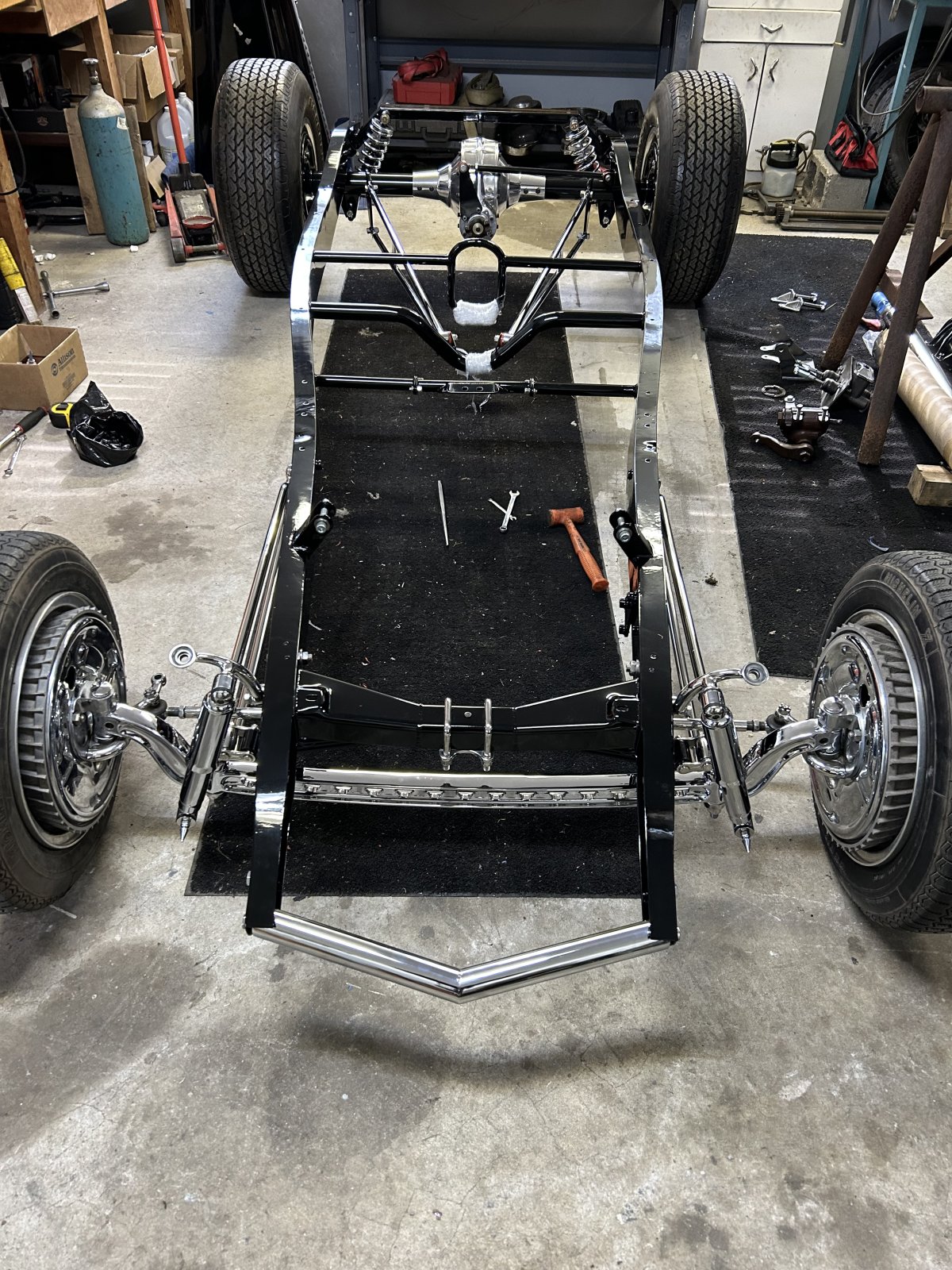 Let me be a little more specific. It won’t really be the power of the engine that twists the frame, it will be the roads you drive over. A lot stiffer suspension than Henry Ford designed, and the rails themselves being boxed, I think the center X is required to keep the frame in one plane. Otherwise the front and rear crossmembers, and the few little tubes in the center, will not keep the tin above nice and square.