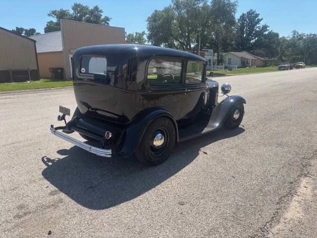 1932 All Henery Ford steel Tudor,super straight body, gloss black paint, 1965 283 sbs,1966 Mustang 3 speed stick trans. adapted to a jeep top shifter to put the shifter in the stock location. 9 inch ford rear end , 4 inch dropped axle, with dic brakes. New 16 inch wheels , org interior , org garnish molding and dash, org sun visors, and windshield, and rear shade. Soft top looks to be original , doesn't leak , looks to have one paint job. Randy
