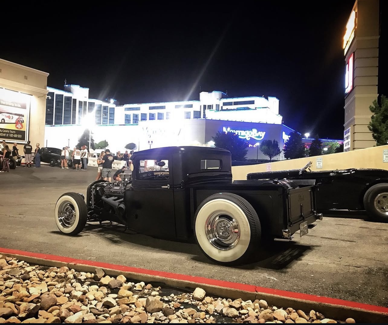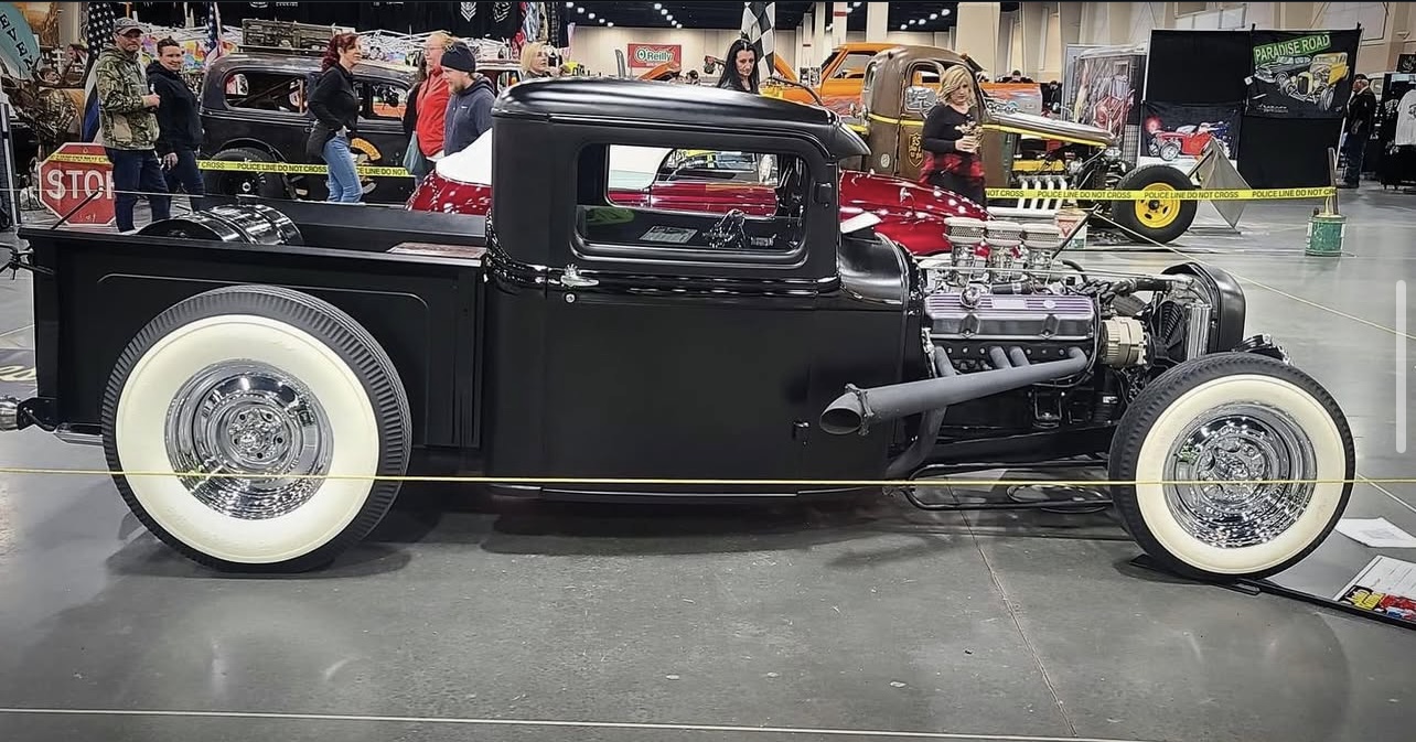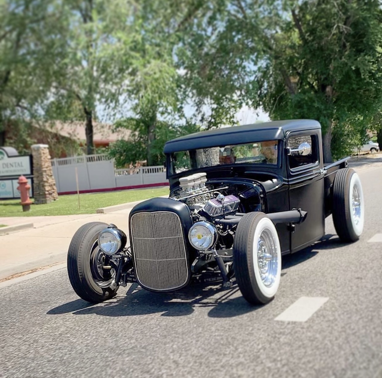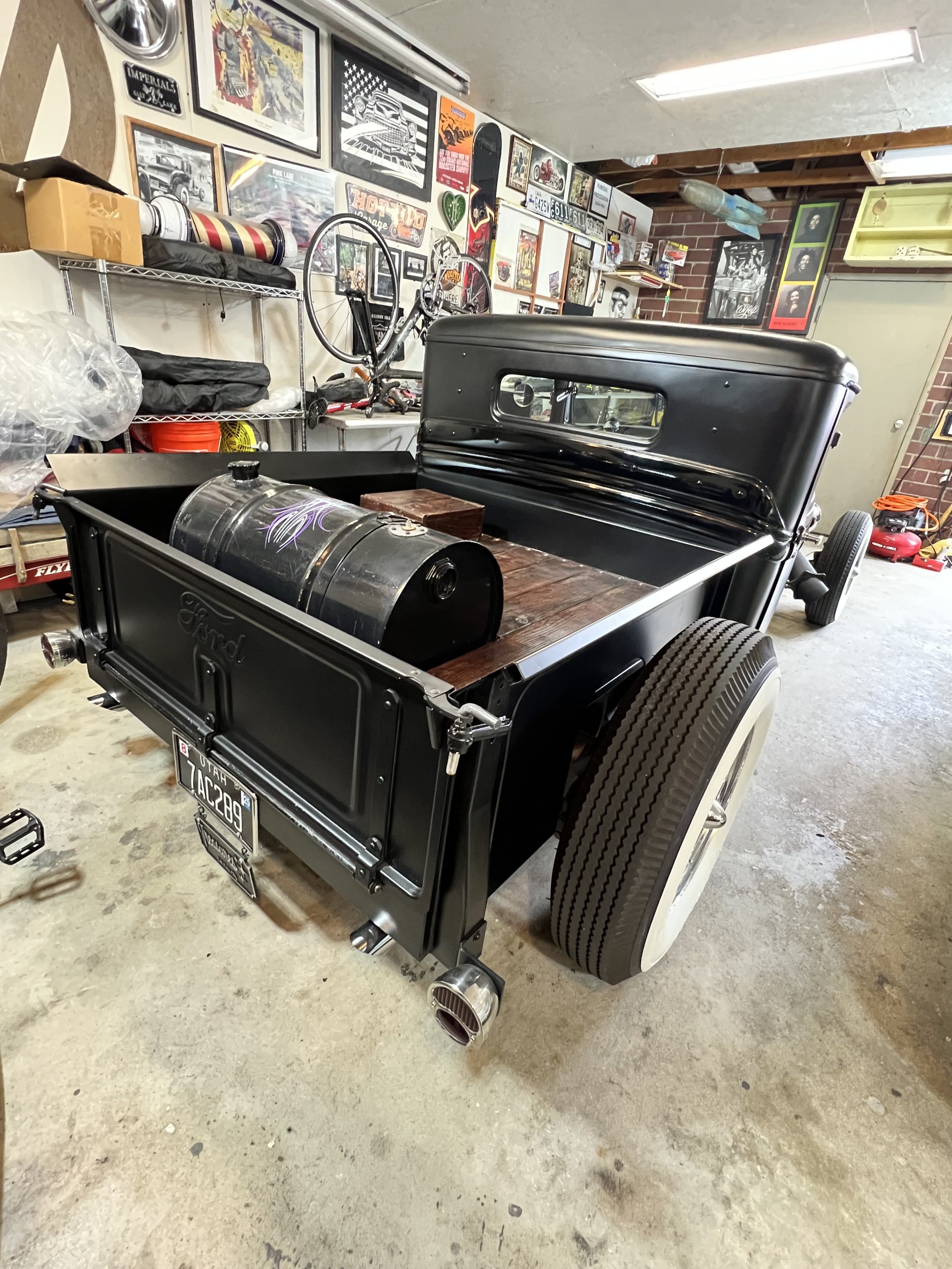 383 big block- 1966 dodge coronet drive train 1934 ford pickup. registered as a 1934 ford pickup Engine 383 big block mopar. 2500 miles on motor since rebuild. Super 97s tri power. comp cam. gear drive. Rear suspension: Transverse leaf out of 41 ford pickup. 4 link Mopar 8. 75 rearend with 3. 55 gears. locker Front suspension: beam front end with hairpins. Ford F1 front drums. vega steering box trans: 727 torque flight 15000 miles on rebuilt trans. shift kit. heavy duty clutches. and heavy duty torque convertor. deep sump pan. 18" heat sink cooler new glass Guide 682c headlights- all lights and turn signals work Chrome dash Genie shifter Cruzwell custom oval steering wheel Rare Crafty B air cleaners Lake headers with turnouts and baffles with exhaust To the rear Frame. Boling brothers early iron frame 5/10 sweep. satin black epoxy paint Chassis 100% tig welded Stewart warner gauges Lokar shifter Body chopped 5" channeled 4" bomber seats the chassis was 100% tig welded. not your typical bubble gum together "rat rod" Very clean! custom steelie chrome wheels made by TRUSPOKE Firestone big and littles- 15s up front, 16s in rear never over heats or goes past 190 degrees- electric fan on at 190 and off at 180 Super reliable turn key hot rod- ive driven to bonneville multiple time- never any problems- never driven on the salt either 2 tone black body , matte with gloss black body trim Interior is black with purple text with any questions anytime 323-839-1530 Located in salt lake city