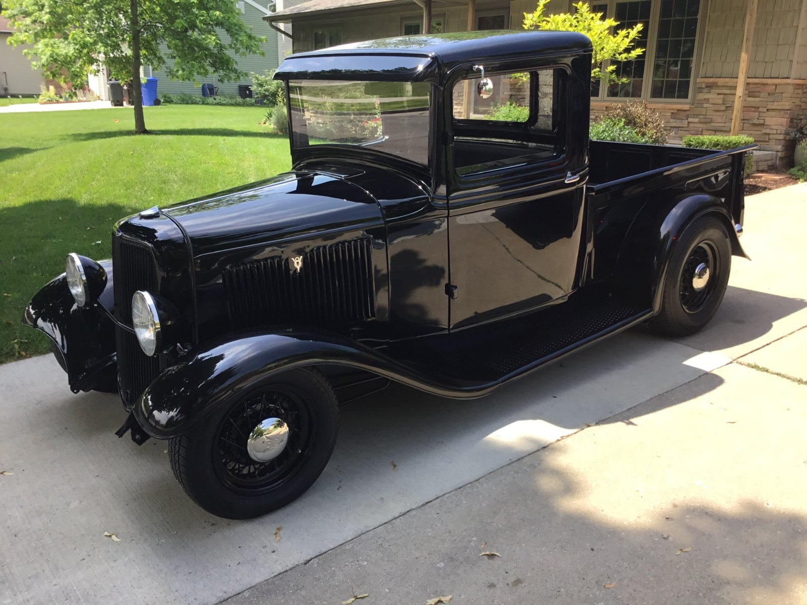 34 Ford PU, all steal, matching #’s title. SBC, 350 turbo, 9 inch Ford, CE rear suspension, P&J/SoCal front suspension, new United Pacific rear fenders, new gas tank, glass and door latches. Walker rad. doesn’t over heat. All lights, signals and gauges work. Rebel wiring. Wheel Smith wheels and new tires. Box shortened 5 inches. Search thread “Oh my, here’s how it ended” for more information in a couple of my posts.