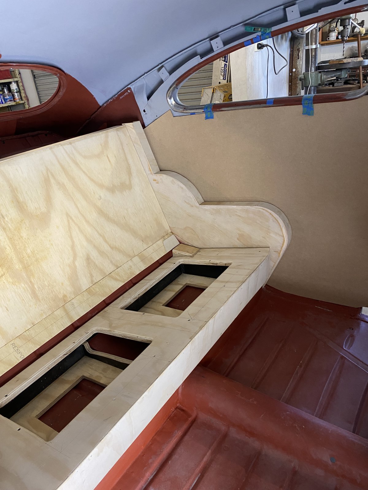 I was quietly shitting myself about this task and procrastinated a long time as a result but, I had to bite the bullet. I asked a mate over to help because he is an extremely good cabinet maker, R/C model maker and generally good with his hands and gluing things. And I thought I could do with extra hands, eyes and brains. As it turned out, it was a lot easier than expected. Phew! I sanded both the epoxy painted boards and the rubber and did the gluing in stages one board at a time. After doing a thorough dry run to observe fitment and any issues 1st we did the lower edge/lip, then the flat surface in one go, then the ends. I allowed the glue to set a good 12 hours between each of these stages. The glue is a contact adhesive good to 130 degrees C according to the label (100 being water boiling point) so I figured that would be good for black boards sitting in the sun. I found it best to apply to both surfaces and allow it to become completely touch dry before bringing them together firmly. We used both hands and a hard roller to press the surfaces together. The ends were done last and as you can see in the pic with clamps, some pie cutting was needed to remove excess rubber to let it glue down flat around the radius of the roll. We also had dowels on the top of the board to prevent any out of control contact. That wasn't super necessary, but these things are pretty big to deal with on a benchtop so is worthwhile. The covers themselves are Drake. I've had them stashed away for nearly 15 years! They fit well. I can't comment about durability yet, but all in all, not the nightmare I was imagining for so long. More about taking care and not rushing.