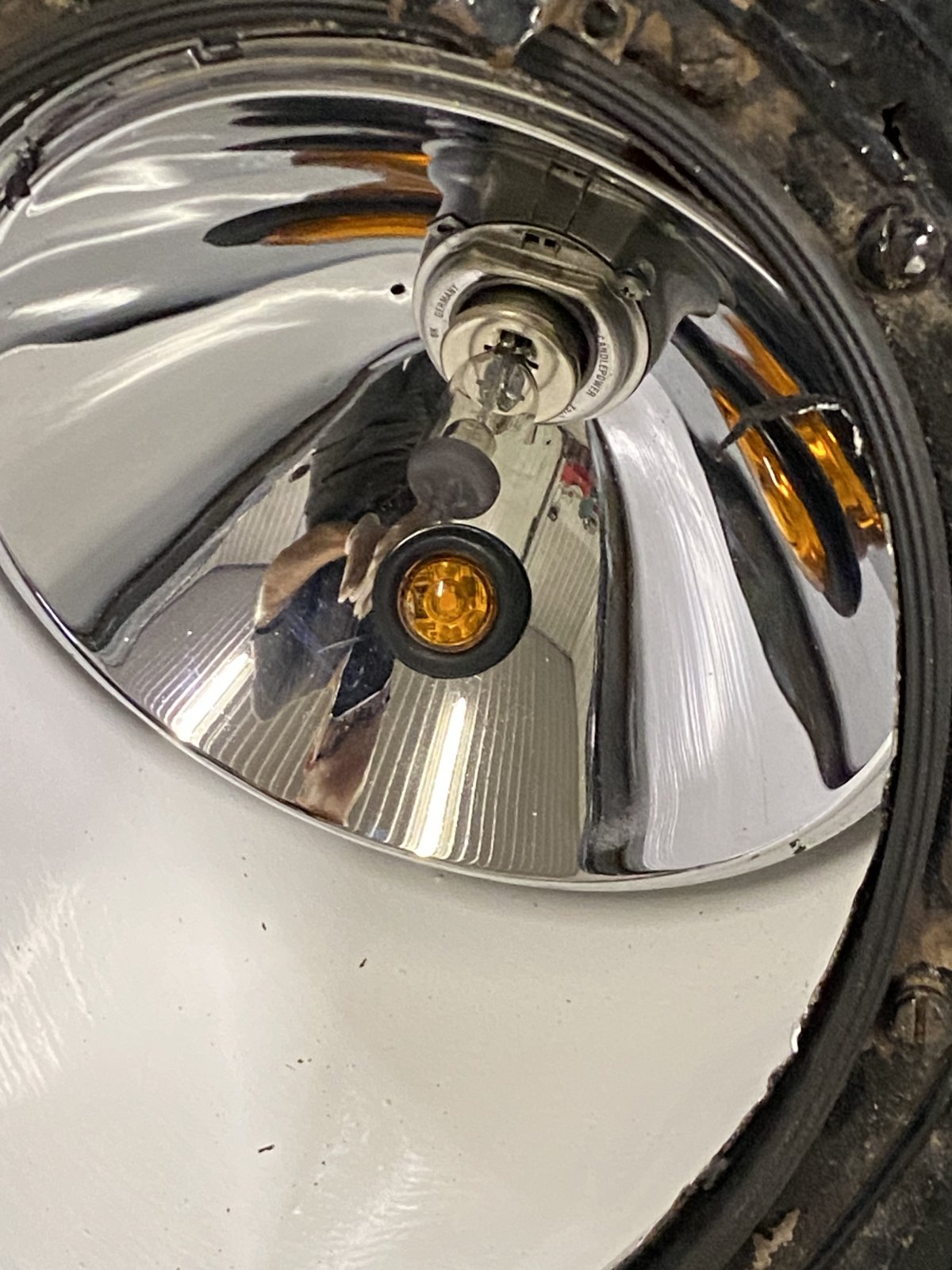 There are better options, but those will require a complete lamp/reflector/lens change. You have one of the better conversions, but the lens design is holding it back. That 85 year old design is simply not optimized for a halogen lamp. If you want to get every last bit of performance out of this combo, swap out the reflector for one without the turn light and move the turn down into the white area. Cibie was the gold standard for years, with Hella a distant second. Easily the very best headlights I've ever used. I had a full set of Cibie 5.25" lights in an OT car years ago, those would light up road signs at almost a mile out on high beam. But Cibie allowed the tooling for the 7" and 5.25" round lights to wear out and due to the now-low sales volume discontinued them... The new player is Koito from Japan. Supposedly equal to or better than the Cibies, these have precision metal reflectors and optical-quality glass lenses for maximum light transmission and minimal 'scatter'. I'm not a fan of HID or LED lights for various reasons. There's just too much snake oil in the marketing... and there's been a lot of complaints about LED headlights, so much so that the NHTSA is reviewing the current standards.
