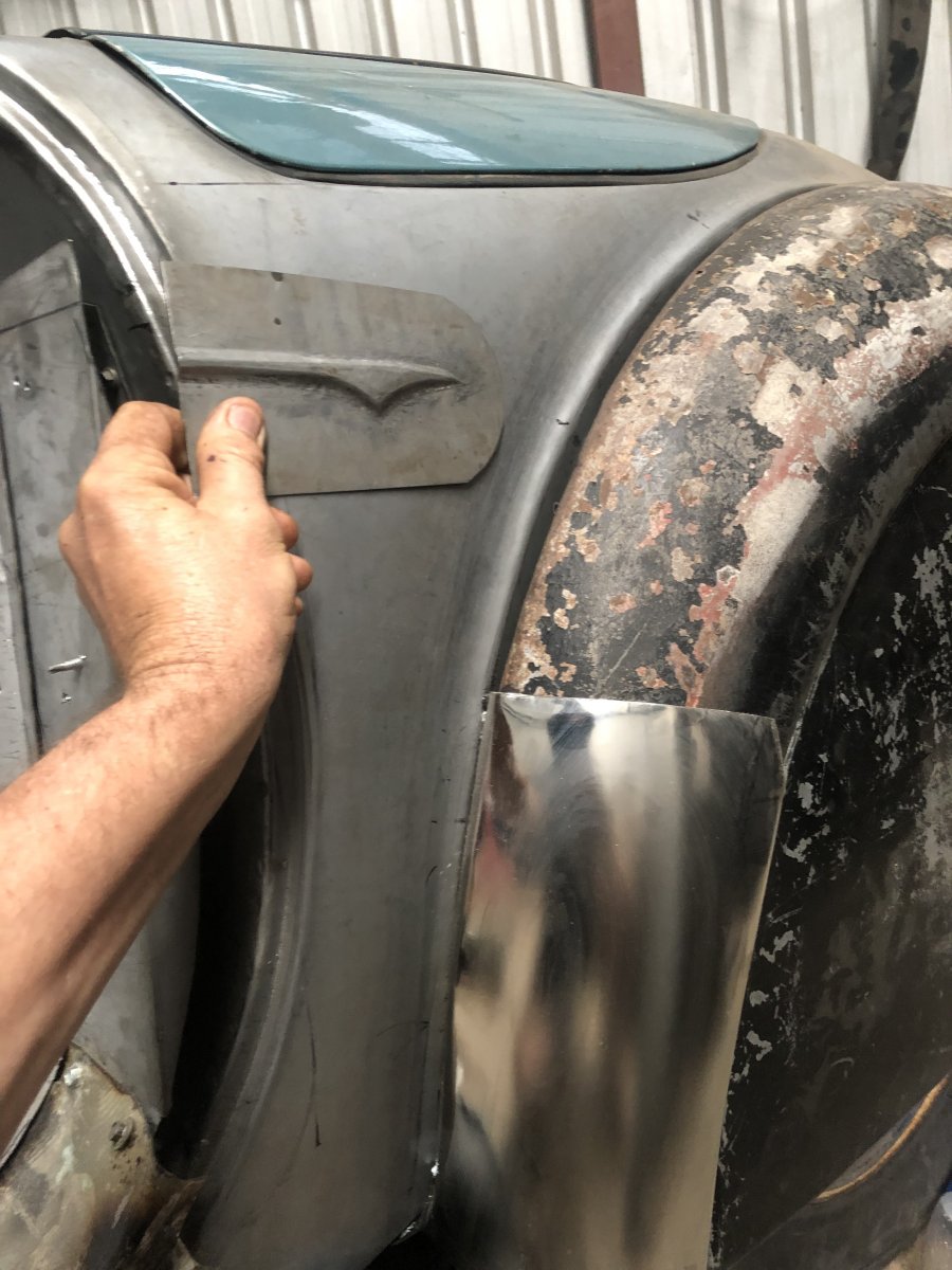 I found some oval SS handrail tube at the scrap yard. I need to get the car a bit further along and then play with those. I have some nice Packard overriders which need some aerodynamic reshaping.