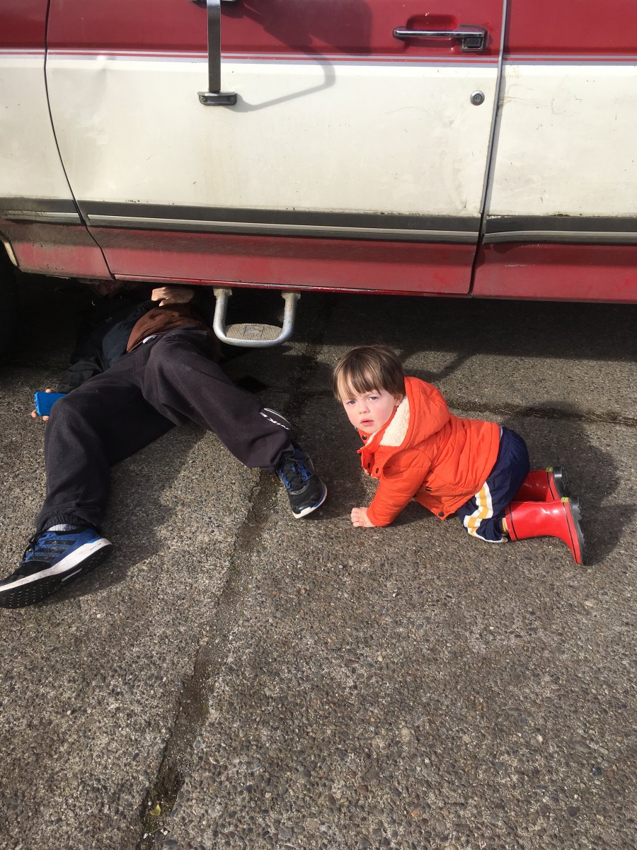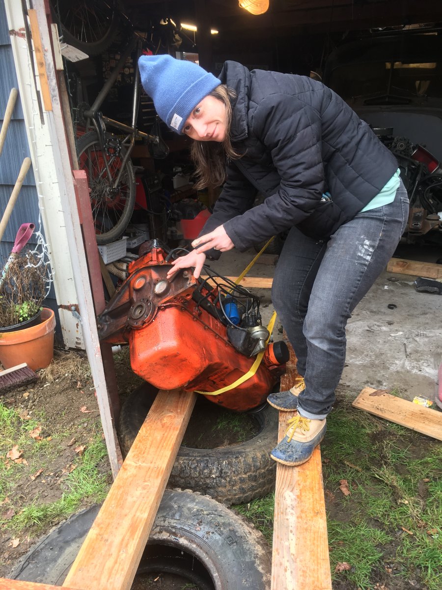 Well it happened. I decided on a motor and bought one. Went to Lebanon yesterday with my buddy, his three year old and I took his truck out there to grab some inner rockers from The filling station and check out a straight six I found on Craigslist. The owner seemed like a nice guy, he’d pulled it for a 350 swap. It was pretty clean and he claimed ran well. Think it’s a 72. Anyway He had a hoist so we loaded it up and brought it home. However I don’t have a hoist and my neighbor who does was in the middle of an engine swap so my amazing wife and friend and I concocted a cunning plan to get the motor out. It involved 4x6s old tires and two comeallongs. It was sketchy but it worked. Now to figure out how to go from 4.3 mounts to 250