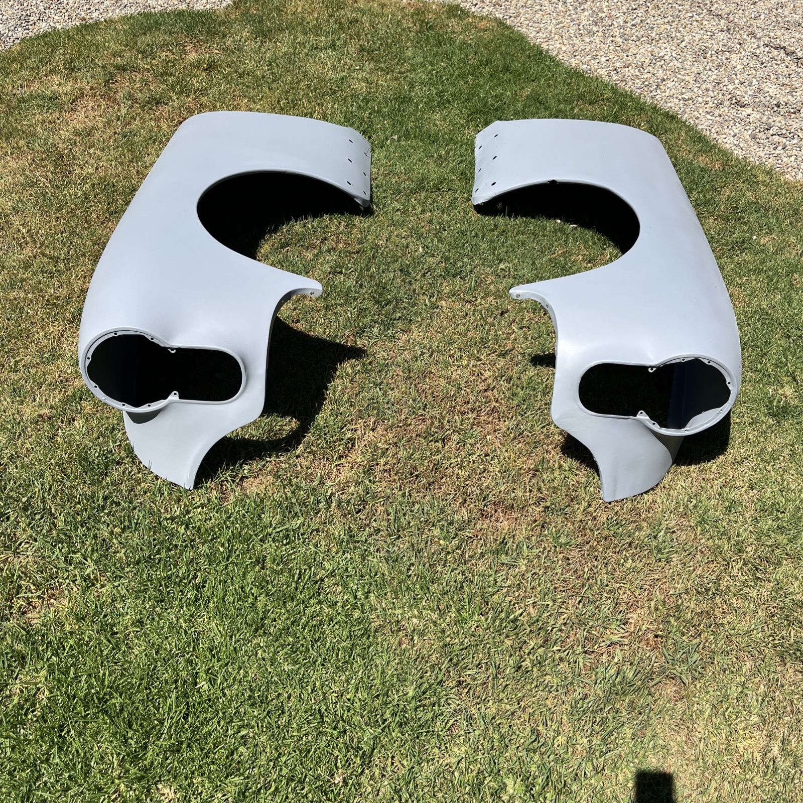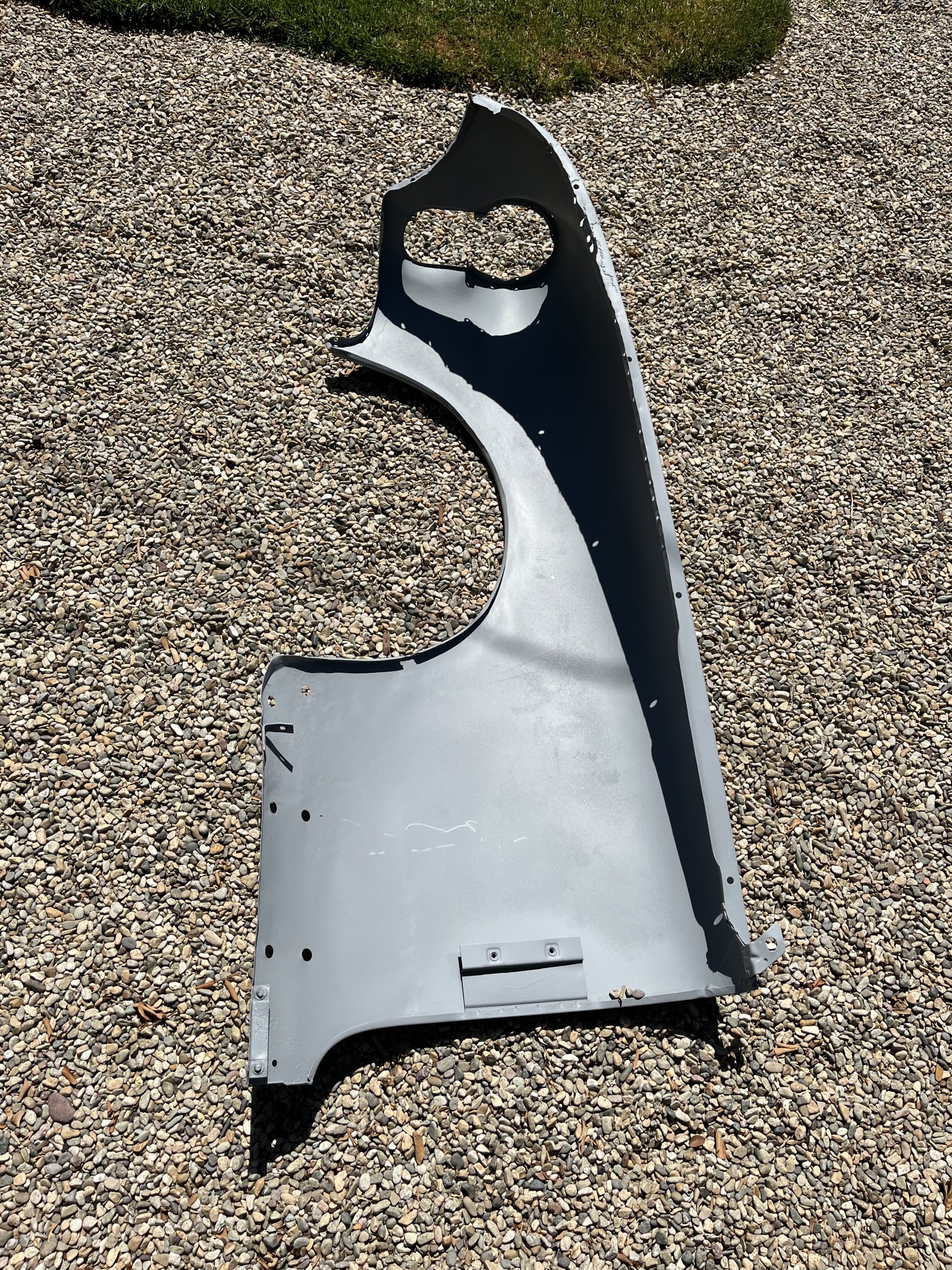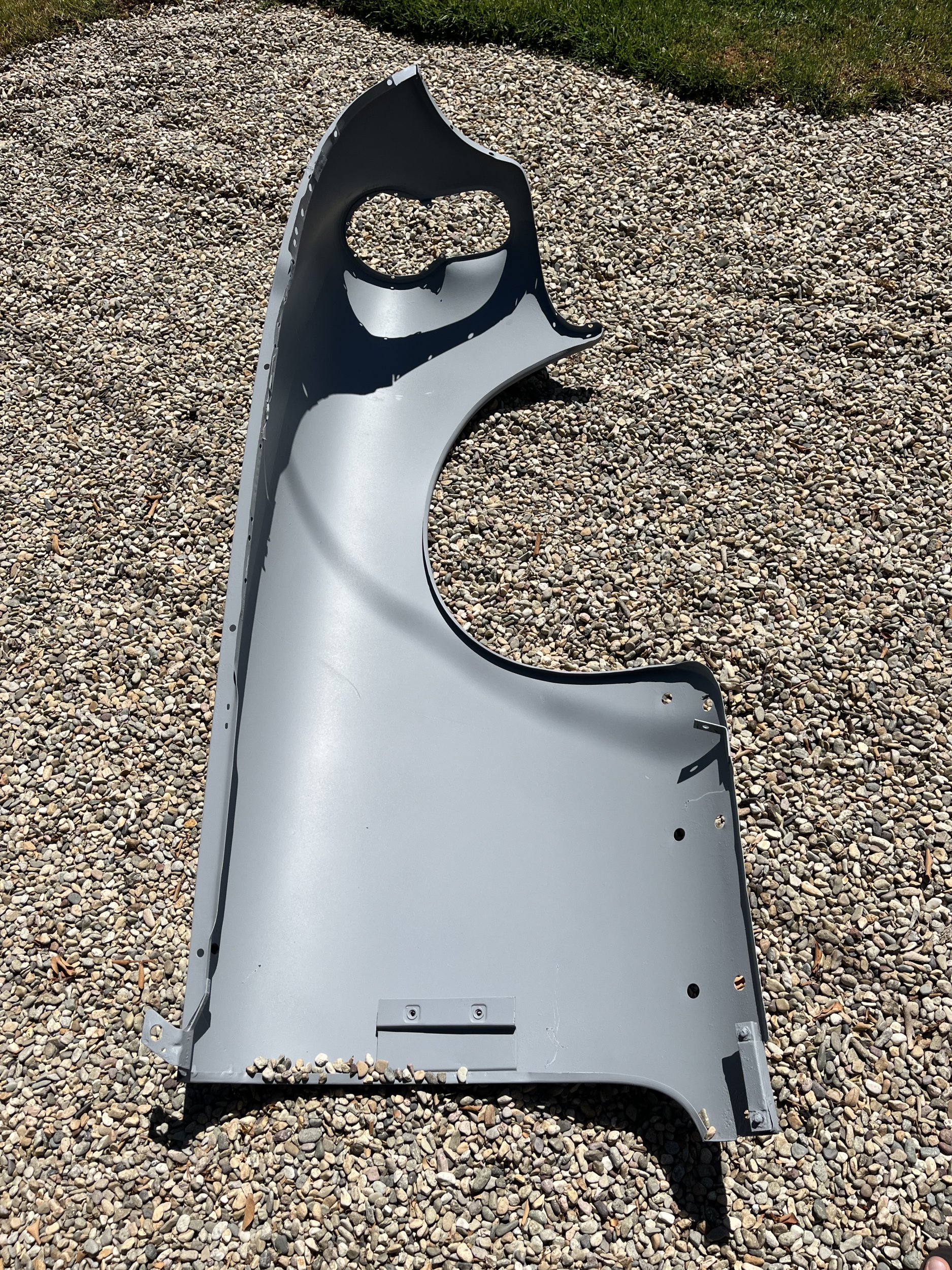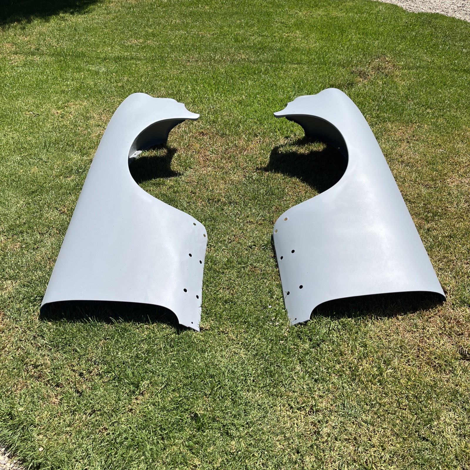 Solid, rust free 49 98 Olds front fenders. Pretty straight, but might need a little work on the lower edge. Passenger side has old lead repair. Reasonable offer Prefer local pickup.
