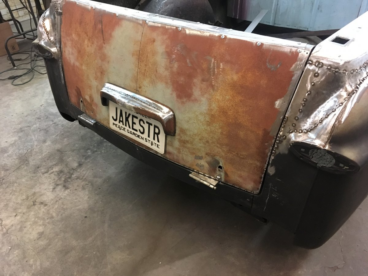 I like what you did with the license plate & light fits the ere. Since the hinges are commercial I think they will hold up fine. When I first saw them I thought they were the thin flimsy ones and I am sure everyone else thought the same thing. What color do you plan on painting it ? Keep up the outstanding workmanship. The picture Low Budget looks right on.