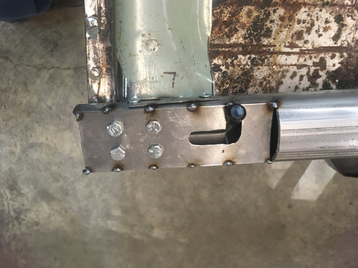 Stainless spring pin latches came, made mounts, cut tube, tacked in place, and work good. $16.50 delivered from Amazon!