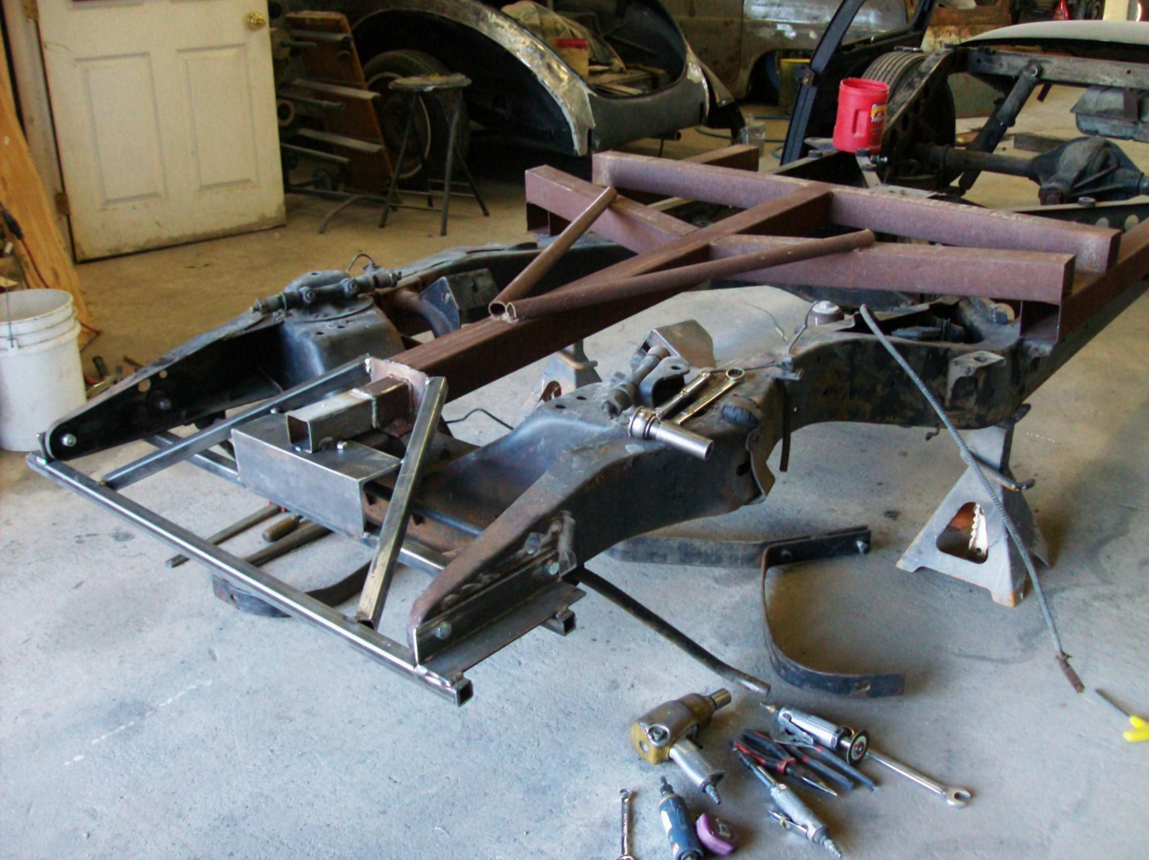 Well Steve since you beat me to the clip in Santa Anna last weekend. Tuesday i had to send Greasy to 29 Palms to get mine. This is a 79 Trans Am clip and i am using the stock TA big block springs as this one will have a heavy Ford 460 C6. When this car is all back together. The frame should set a little higher than we want at around 7" ground clearnce. So i am planing to add 2" dropped spindles but i want get it all back together first. Here are some new pic's. I know most of these pics are to late for you but others might want to see.
