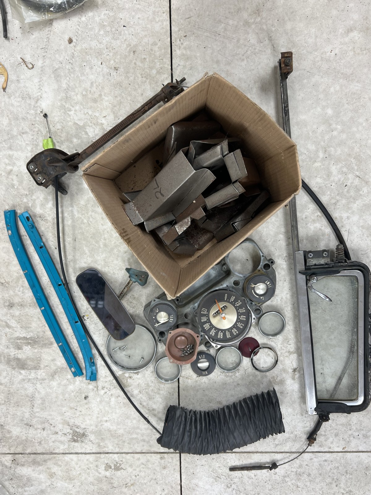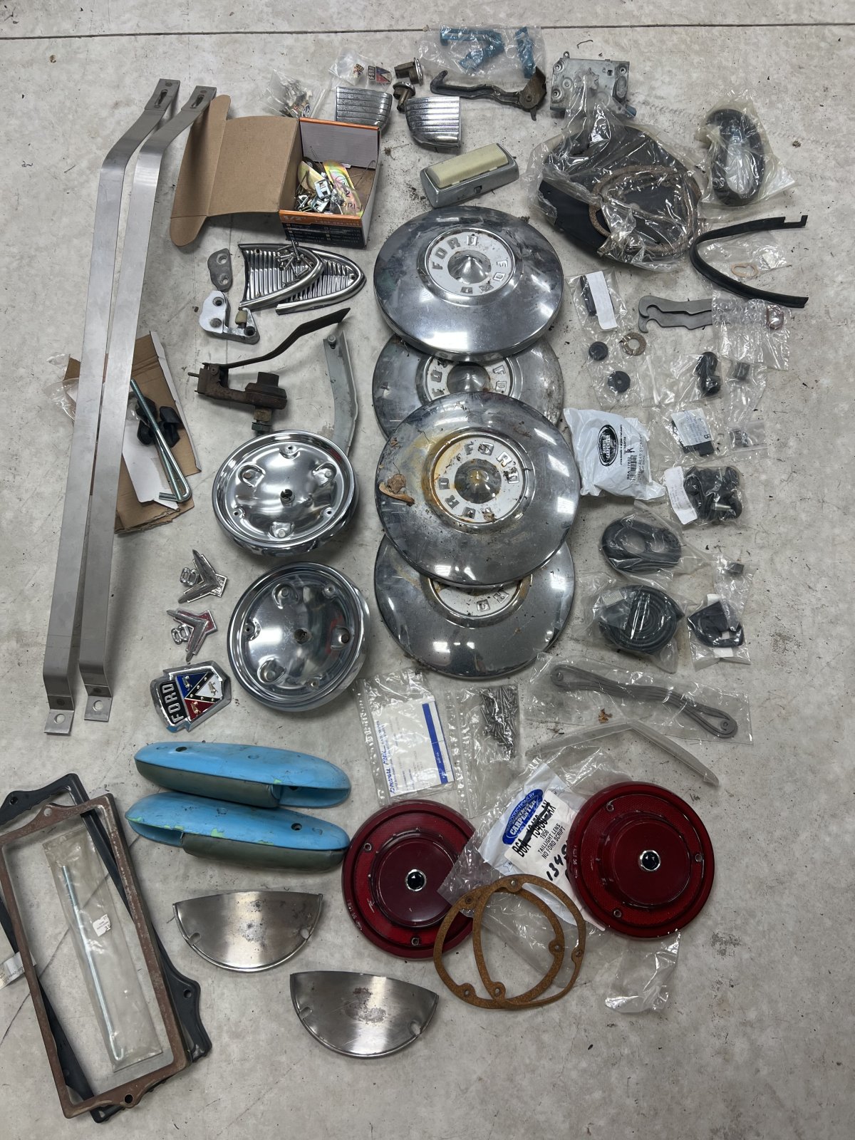 to a nice gentleman in West Texas. Now I have a bunch of parts leftover and wonder if anyone here might have some interest. Not looking to make a profit, just a fair offer. Everything is from my 56 Customline, except the rear window from a 57 Chevy convertible and a couple hubcaps from my 64 Galaxie. If this is not the correct thread, I apologize. If there’s any interest, let me know.