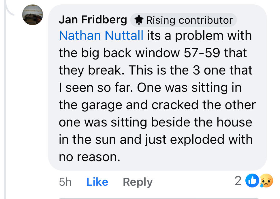 I've seen it happen, too. There is a lot of tension in the glass with those big, curved windows and sometimes they just let go. Then, for whatever reason, you can beat a piece of glass like it owes you money installing it and it's fine. Luck of the draw