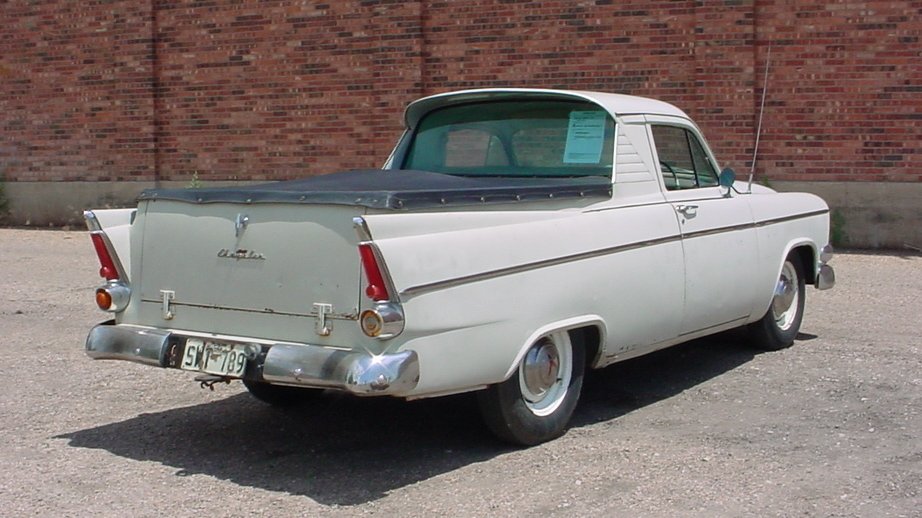 The wagon tailgate is the same from 57 to about 60 I think. One would be real hard to find, the bottoms tended to rot out, and I'm pretty sure they would not be wide enough. My son has a 57 wagon, if I remember, I'll try to get a width on it. I suspect the main reason Dodge didn't use the wagon tailgate on the truck was because of the bottom hinging, the truck and the wagon were way different. The truck had a simple hinge pin that fit into the bottom hollow tube on the tailgate and bolted to the bed rear uprights. The wagon has a double hinge that is torsion rod sprung, the wagon gate had to swing up and out as it opened. also, method for holding the gate closed was pretty different, the truck tailgates were held closed with chains on the outside, the wagons had a center latch on the inside. You also need to take into account the wagon has a rear window, window tracks, and a window crank mechanism that the truck doesn't need. The wagon tailgates were very heavy, the truck tailgate is pretty light. One more little thing about the differences between the two, the truck tailgate stands vertical to seal against the inner bed sides. the wagon tailgate sits at about an 80 degree angle, won't be an issue at the top, but could be a real problem with hinging at the bottom, because you would want to keep the truck box side level when opened, but the car side needs to clear the bumper when its open. The wagon had a filler plate that was attached to the inside of the tailgate that filled the gap between the gate and the floor when it was open, but folded up against the lower tailgate when closed. That filler plate probably wouldn't survive inside of a pickup bed very long. Having laid hands on both, a standard pickup tailgate, and a wagon tailgate, merging the two to function correctly would be challenging. Gene