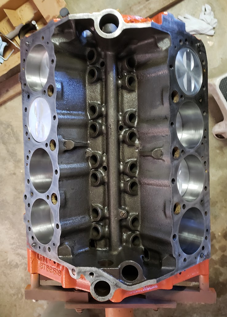 Fin trim rust + patches Pinch weld sections repaired Tailgate trough repair Valence panel mounting structure rot Structure partially repaired Rear wheel well rot Rear wheel well repair Rear cabin wall repair Fin rot Fin repair Bed pinch weld rot Pinch weld repair Fender rot Fender repair Fender repair Front wheel well repair Original front quarters Repaired front quarter Cut passenger side quarters Welded quarters Firewall corner rot Repaired firewall corner 12/2024: I decided after all the months of body work to take a break and finally get the engine to fire. I hooked up a set of MSD ignition parts (motor came with MSD distributor, figured I’d keep it for now) and got the serpentine belt, fuel lines and carburetor hooked up. I was able to get the engine running, but not for very long. To summarize, the engine seemed to flood repeatedly to the point of strong gas smells from the oil. Heavy blowby fumes spurred me to check compression, which was wildly different cylinder to cylinder, with as low as 20psi while cranking. I suspect the compression could be low due to stuck rings, but it being so new I’m wondering if incorrect pistons/rings were used for the cylinder bore, resulting in a large gap and loss in compression. There was also continually water ending up in the oil after running for any period of time, so a cracked block is also a possibility. Regardless, it was something that needed the engine to be pulled and the bottom end looked over. I was never married to the idea of sticking with the 350, and with everything wrong with the vehicle up to this point, I figured I’d start from scratch and go with something I really wanted to use. 2/2025: Work was resumed on the tailgate. Both tailgate hinge mounts were rotted completely through, and the corners were almost entirely Bondo. Brazing had been done long ago to try and patch the outer skin but a lot of that had rotted out of control. So I methodically started cutting out and welding in one piece at a time. Tailgate hinge mount, beginning repair Opposite tailgate mount 3/2025: I went out and bought an old 1958 cast 283 engine. While not an exciting choice, this particular block is a late 1958 production, which matches the timeframe of the vehicle. It had previously run and looked to be a good contender. It’s a weak engine that’s not overly capable of much power, but with a Quadrajet and good transmission/differential gearing, fuel economy should in theory be quite good for this type of engine. Given the traffic in SoCal, laid back driving is the way to go IMO. I also picked up a 1980 Quadrajet and Cliff’s rebuild book to learn how to properly tune these for a given application. It arrived stuck and covered in residue. Tons of powder in the bowl as well. Stock 1958 283 SBC 1980 Quadrajet 5/2025: Engine block returned from machine shop after boring, honing, crank polishing and cylinder head rebuild. High temp orange enamel paint applied. For the tailgate by this point the passenger side tailgate hinge section and corner have been fully repaired. Front panels are nearly complete. Repainted block Tailgate corner repair