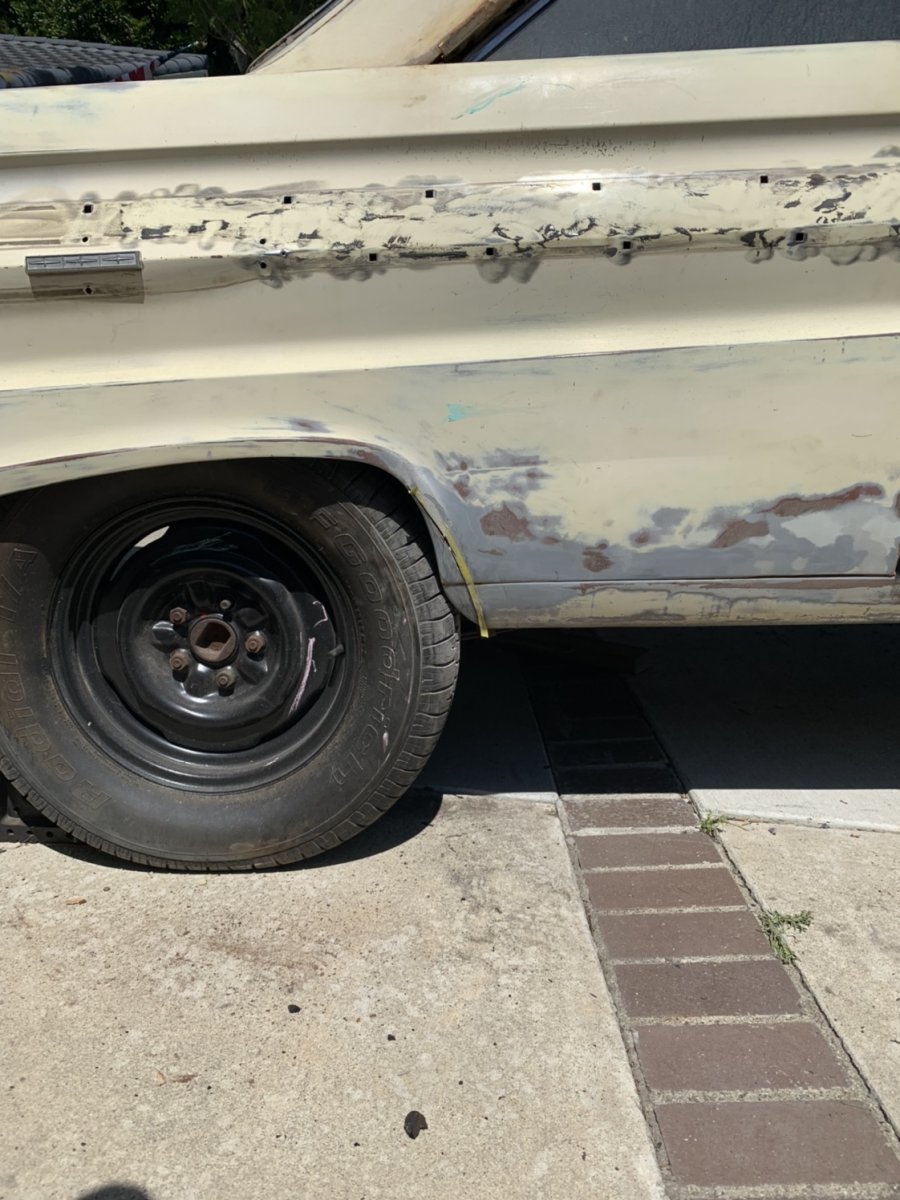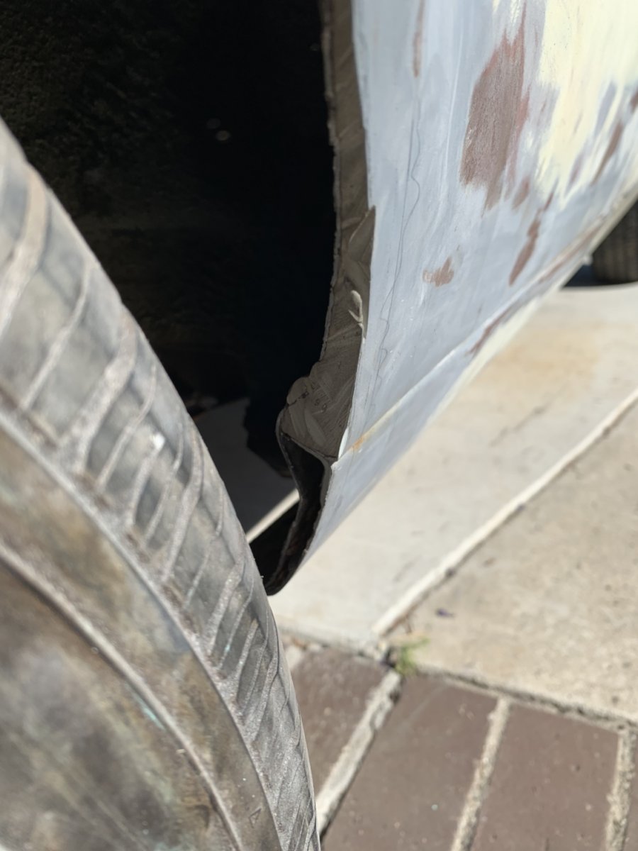 When I was stretching the wheel wheels I found part of the passenger side was made of bondo!! Also working on adding a front cover on top of the grill