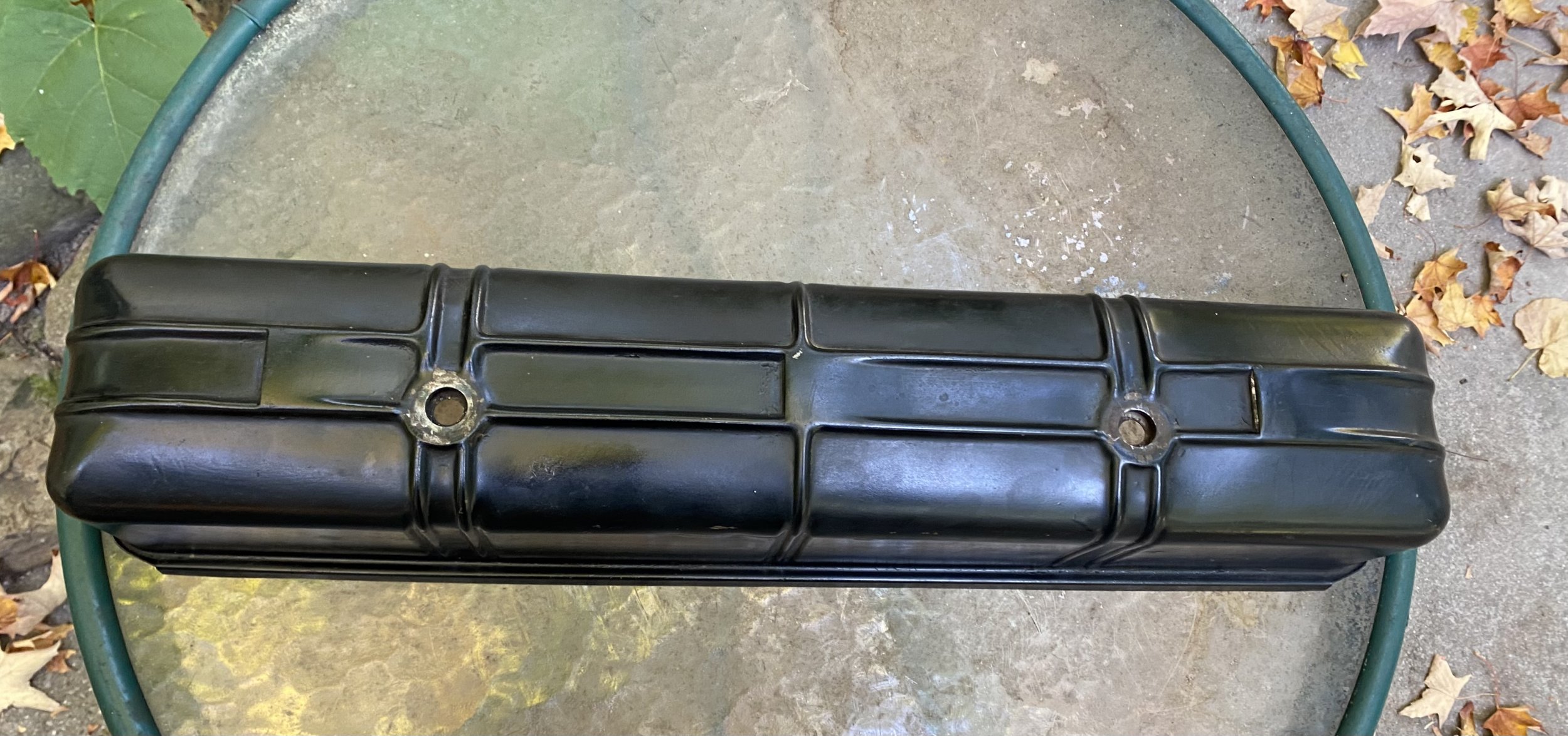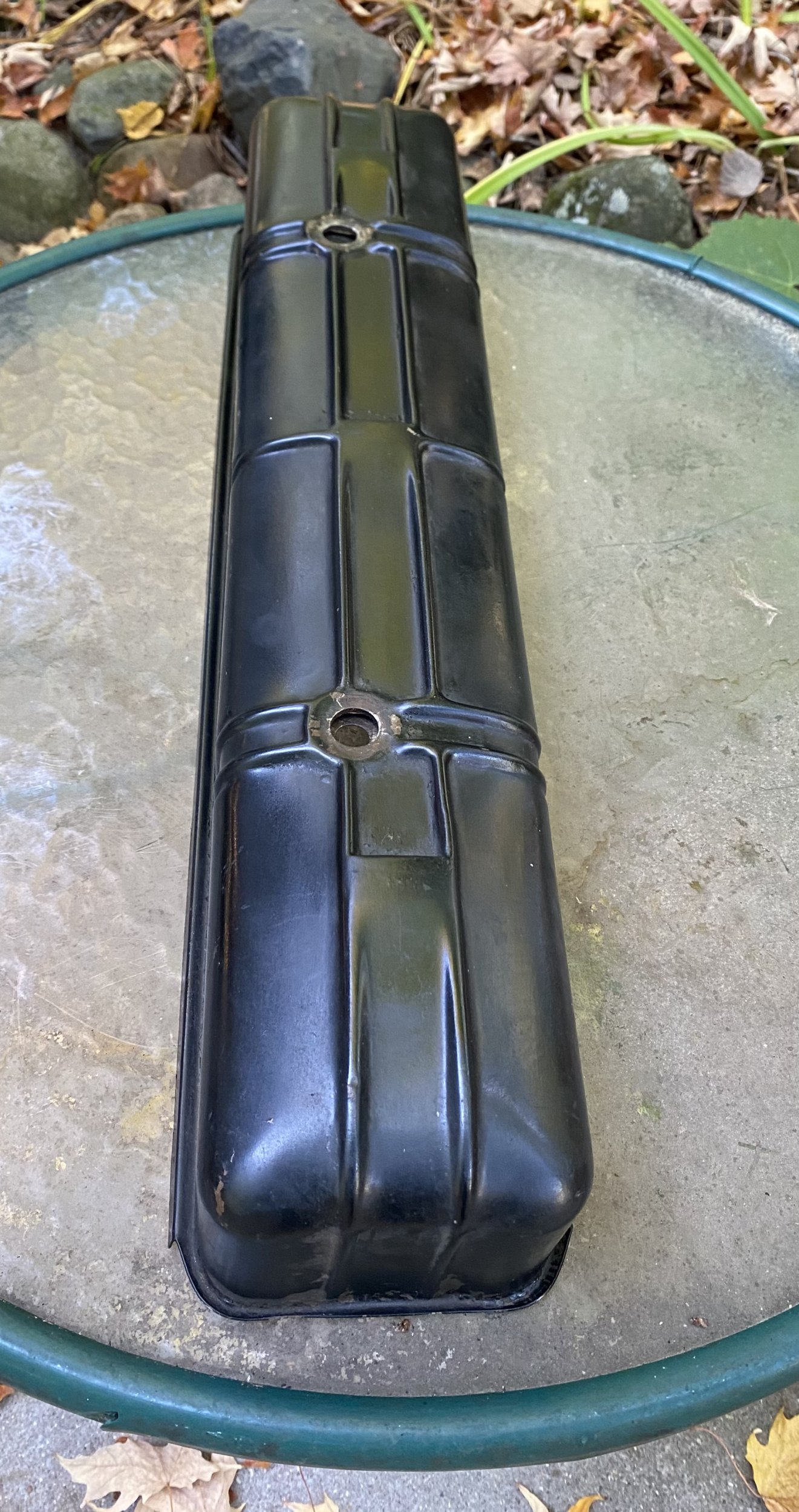 I have a nice used 216 c.i. engine valve cover, with no oil fill hole, held by 2 acorn nuts. This is correct for 1937-1948. The oil fill/cap is with the breather tube. The valve cover appears to be straight and in good condition. With a little cleanup, it can be easily put back into service. $50 + ride.