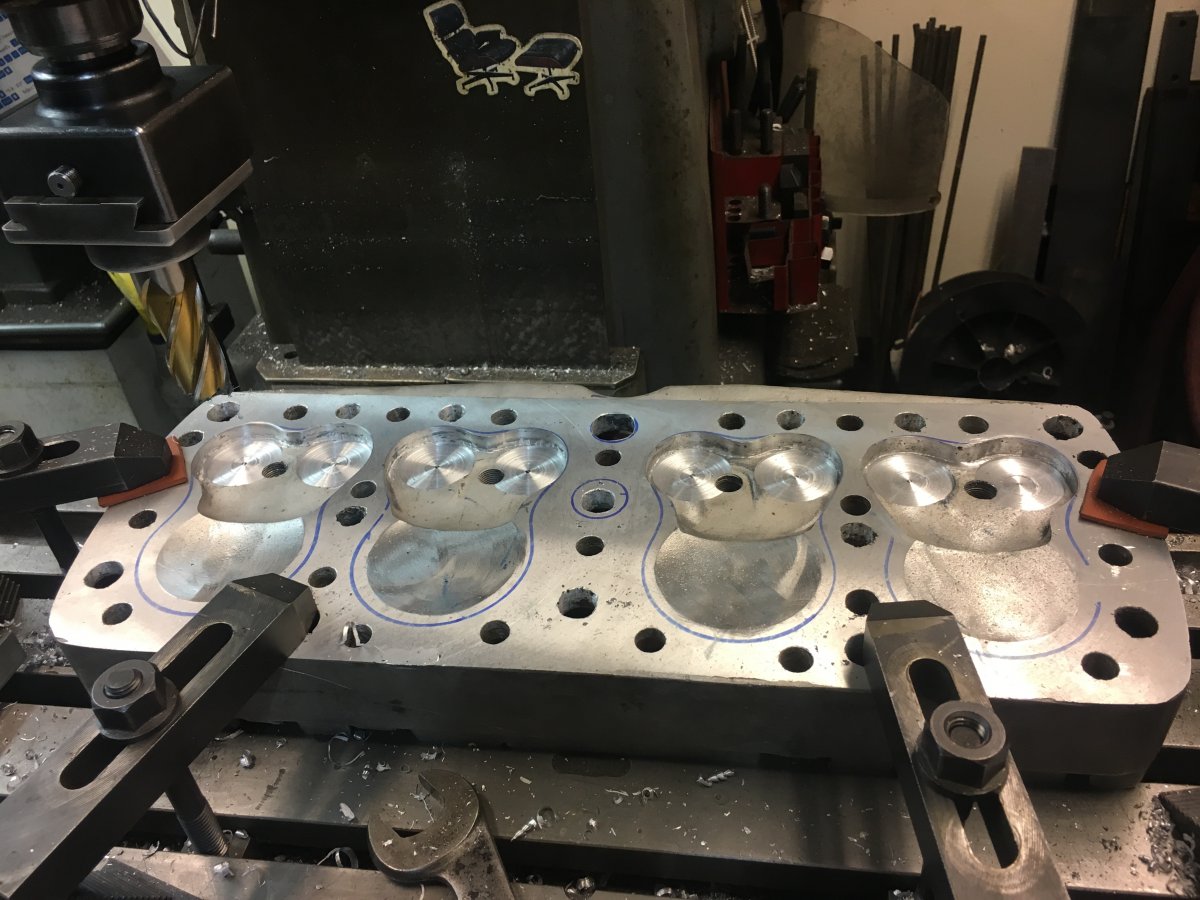 Here's a fun little timing pin I made. These old offenhauser heads have been hanging around forever,several years ago I welded up all the drama. I though maybe it was time to see if they would work, ya know just for fun in the spirit of wasting time. A few shots of machining them back to life, I had to make a flycutter to get a good finish on them. Flycutter uses an insert lathe tool, super handy! I then had to clay them for clearance and flycut over the valves, I used an endmill in a boring head, kinda janky but it works. I ended up polishing the chambers and countersinking the last few threads out, also installed steel time serts cause the threads were shot. couldn't find any photos of the finished chambers. Loads of work, but a fun experience. We don't do this because we want to be sensible right?