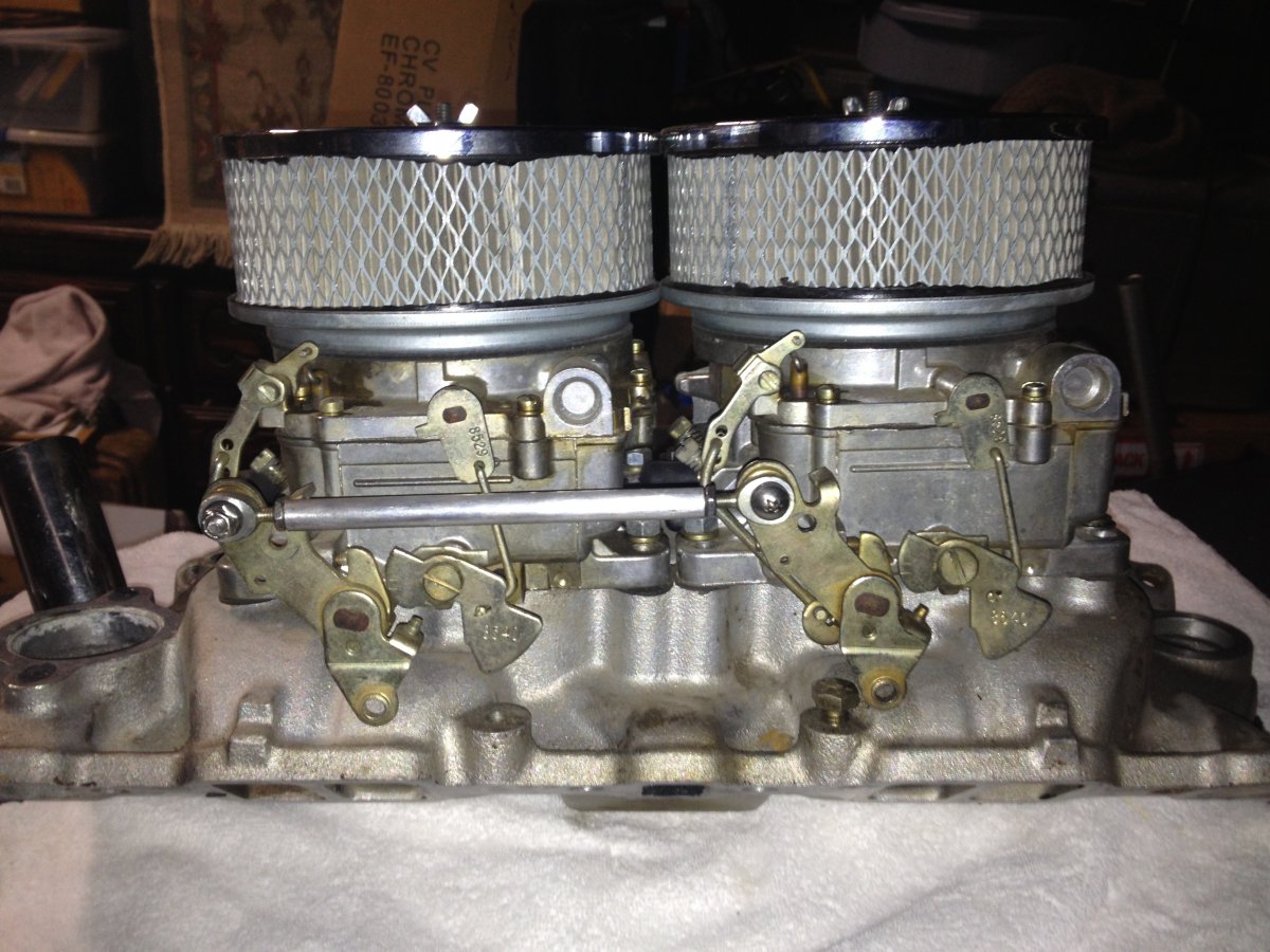 Edelbrock 2X4 intake and edelbrock 1404-3532 carbs . Ran very little on my SBC 327 . Went to 3X2 . Have progressive linkage that go's with it if I can find . It is set up direct . 650.00 or best offer . 214-460-1507 . Thanks , Danny