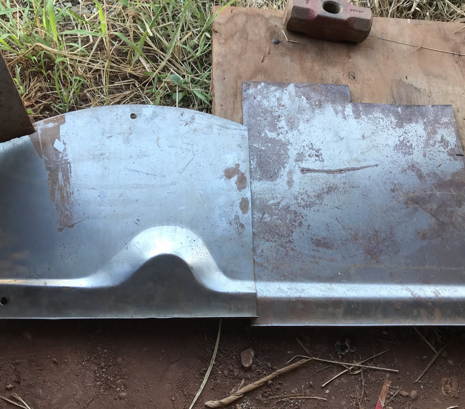 Bought a Phaeton wheel well patch and bent a matching piece on my Old Hot Rod buddies brake while he cleaned his Aku (Tuna).