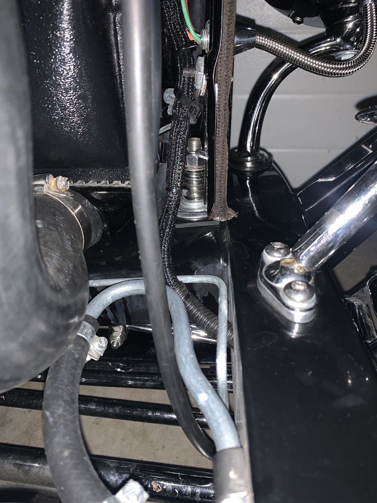 Hey everybody, I had my 32 rewired by a shop a number of years ago when I wasn't running a hood. Recently I went to put the hood back and..well.. as you can see from the pictures I've run into a problem. The way it's routed now the hood side will crush and possibly cut the wiring so this isn't going to work. I'm at a bit of loss on the best way to route this bundle. Should I drill a hole in the frame rail to run it through to the front? Run it underneath the radiator support? Any advice on how to route this wiring bundle and pictures would be greatly appreciated.