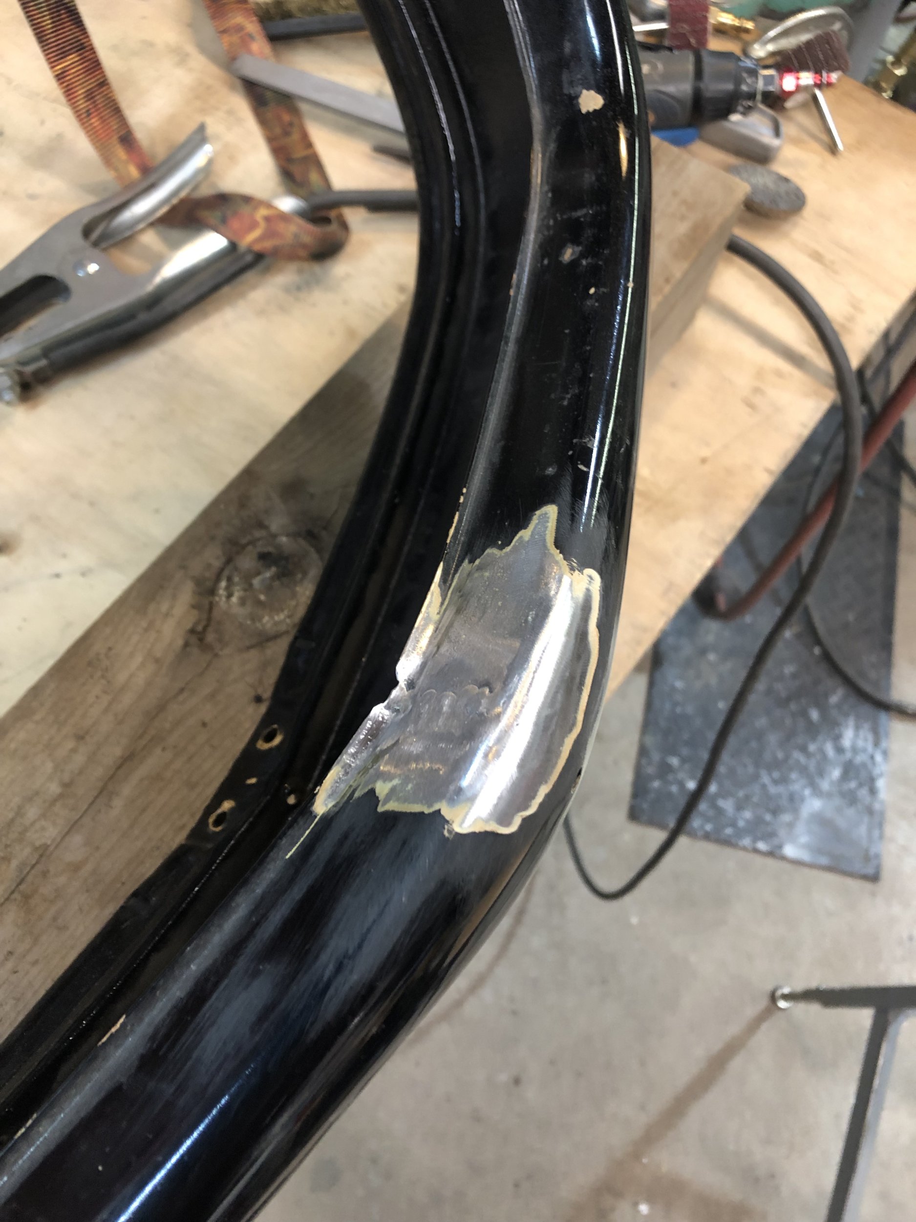 The side of the cowl is turning out nice. At one point it had one of those antennas that had 2 mounting holes on the side of the cowl. Those hole have been welded up but the panel was pretty lumpy.