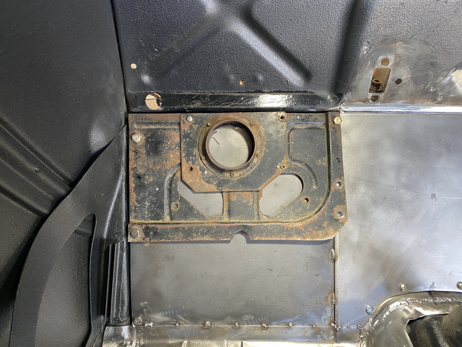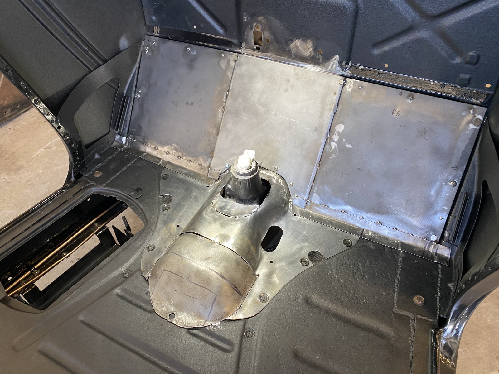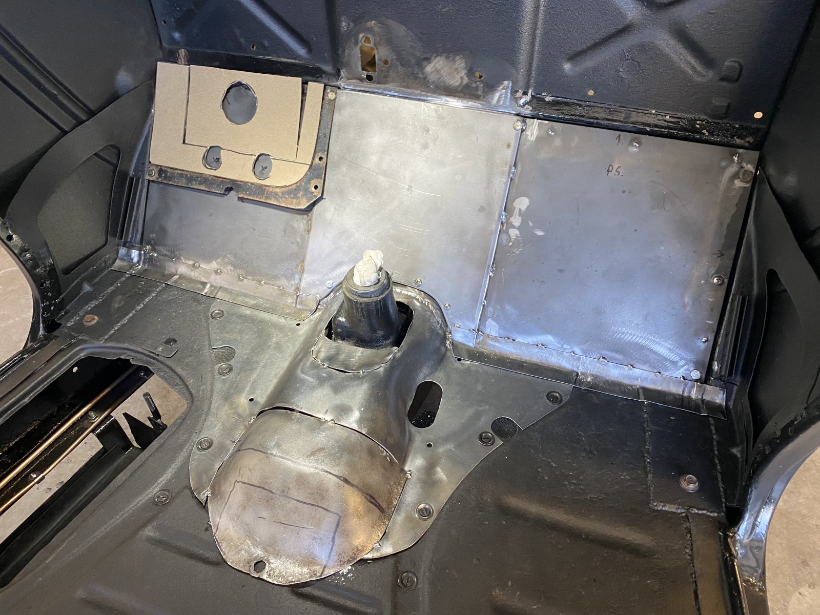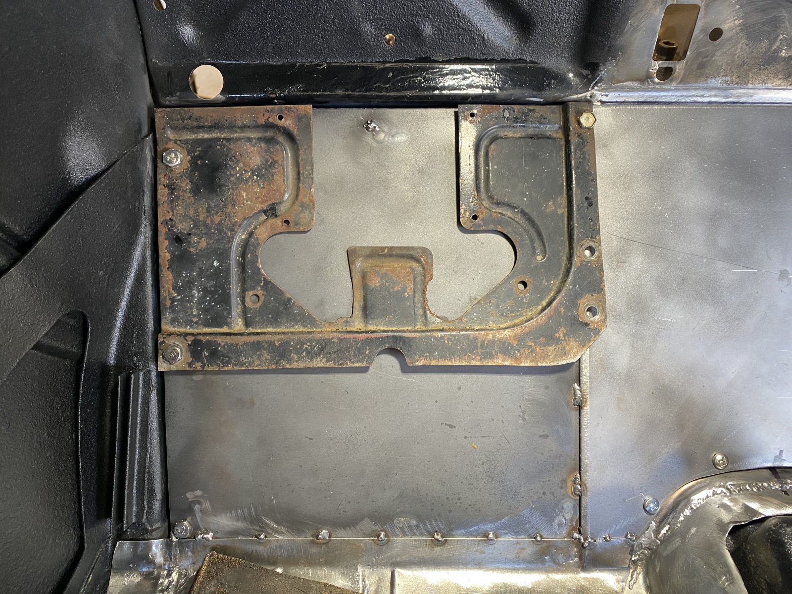 Boy! Im glad I didn’t chop the top! With how much this small tranny tunnel gave me such trouble! Moving warping Slice an dice!!! Finally got it looks like crap! I’m gonna cover it with all that dura glass fiberglass filler and then undercoat it black rubber under coding and insulate the backside of the toe board and the bottom of the tunnel. Ignore the ugly gorilla welds I was tired they will be covered!!!