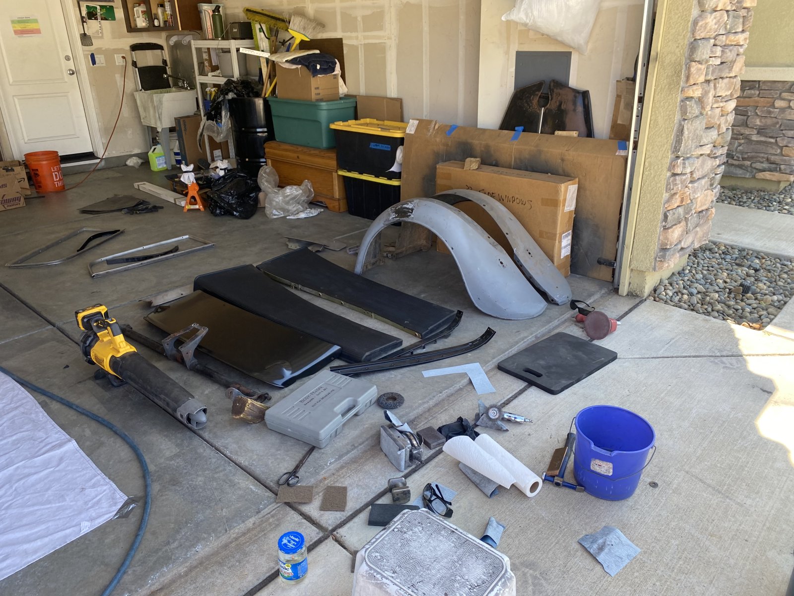 I don’t know… Do you think I can bust it out in a week? That means sanding fixing dents, a few welds on the Fenders and Doors, and then assembly and paint a bunch of the small parts.