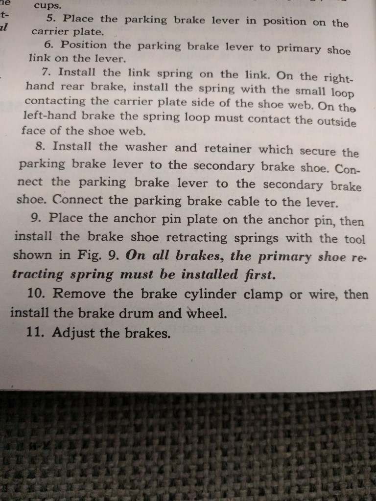 For what it's worth Bendix specified that the primary (front shoe) spring be installed first.