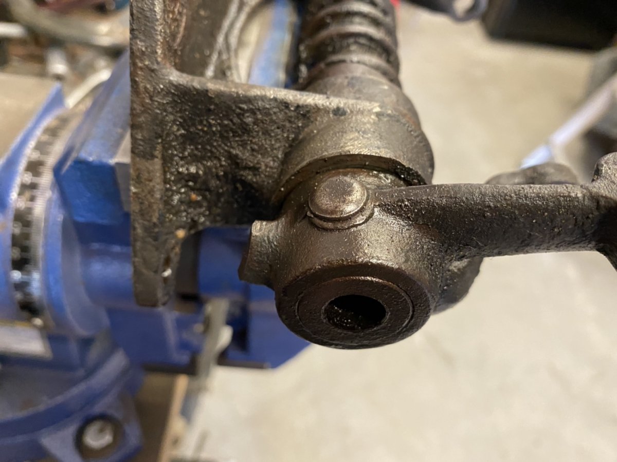 It kicked my butt, but I won! Had to grind both heads off and drill the pin out, it was more like a rivet, would not budge! With force, heat Cursing!!! Probably gonna have replace with bolts, and tack weld the nut, I don’t know if its cast steel, or Iron. But, now I can machine some new bushings!