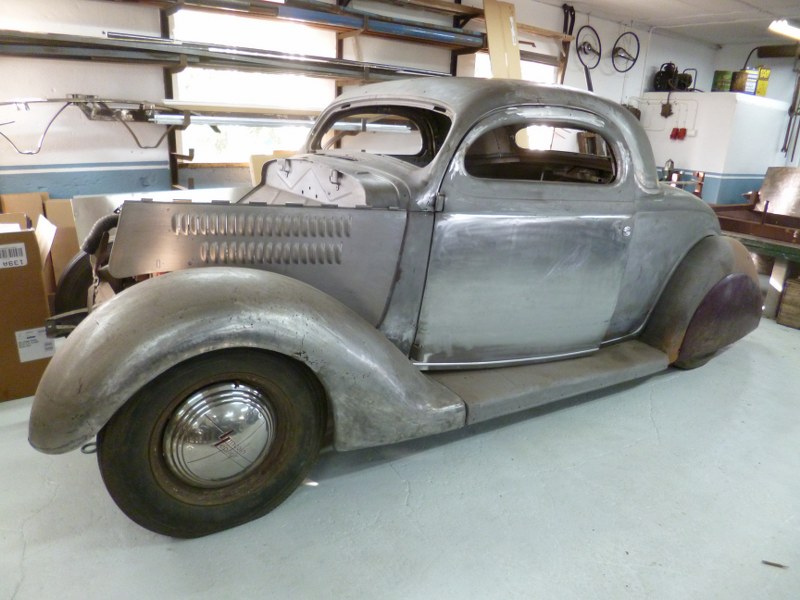Took a brake from house renovation the other day and went out to the garage instead.Mocked up a hood side and put a 38 lincoln hub cap on just to get a peak.Popped a beer listening to some blues and dreamed away. P1010975_800x600.JPG P1010979_800x600.JPG