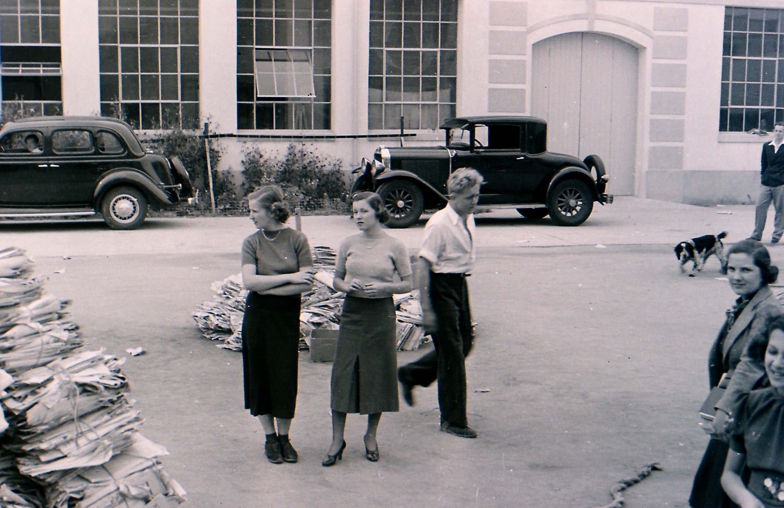 Found this undeveloped roll of film in 2008. Had it processed, the negatives are all curly. Had some proofs made, my guess they were taken in 1937, looks like a paper drive….In the “can” for 71 years….. l
