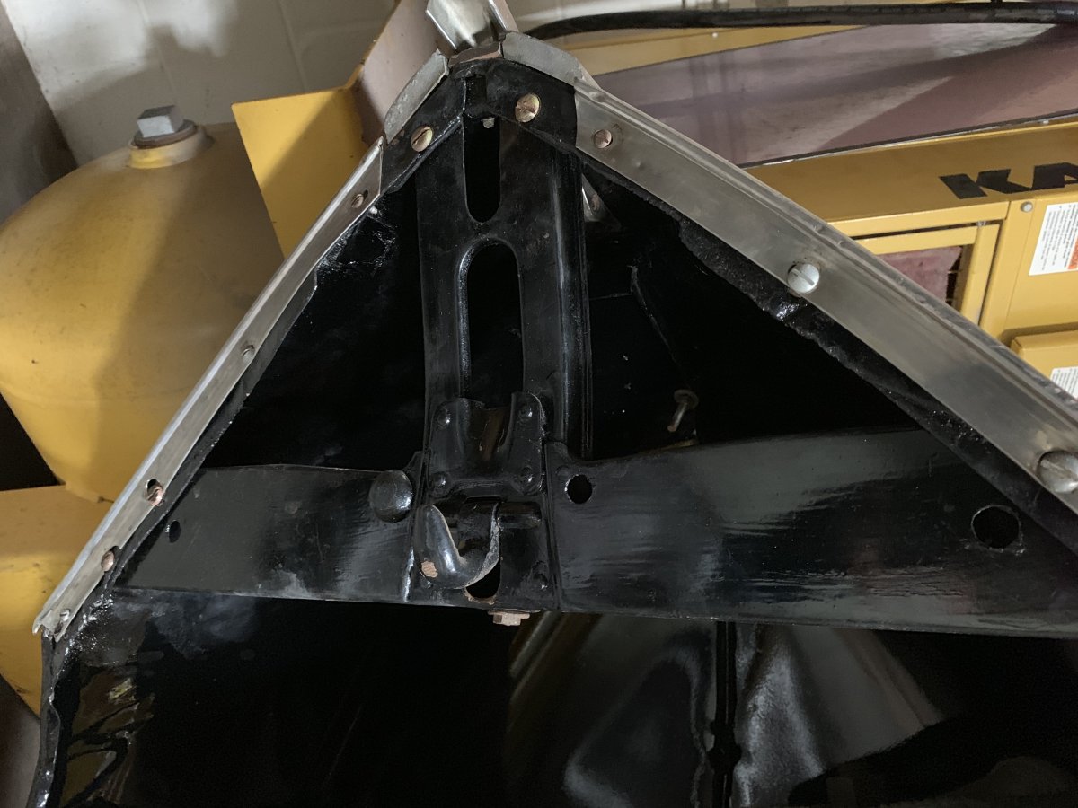 After she me garage cleanup I began checking a few of the underneath things left to do. First off was to see how my helper springs looked mounted up …. …. and of course we have some issues. You can see I am too long between the rear mount plate and the rear spring shackle. Ine option is to trim off a portion by the rear mount plate and lop off about 1/2-3/4” off of the rear shackle end (I do not know if that would compromise the spring) or research another spring. I can’t put it on the front side of the spring as the spring pac wraps are in the way. So, I am considering doing the trim deal first before doing anything else but we shall see ….. Check my driveshaft angle I am 4 degrees at the rear, 8 degrees at the tranny. I could drop the engine just a bit but that would probably not buy me enough to get to the 1-2 degree and no more difference and it might mess up my exhaust. I might have to do shim the rear. I did fix a broken fitting off one of the residual check valves. Half the head of the adapter had sheared right off. I am also looking for a suitable location for the Lokar park brake cables junction mount points……