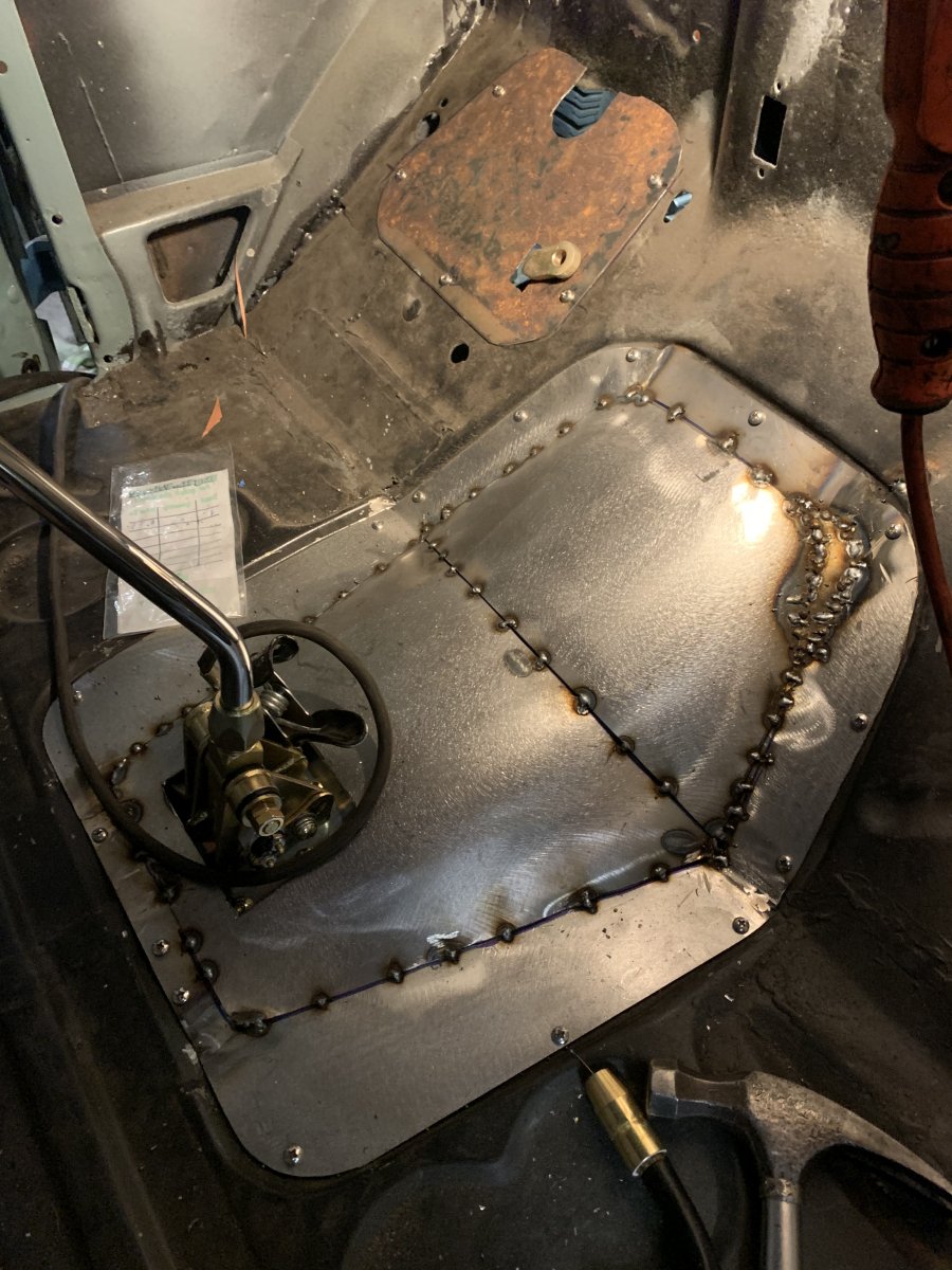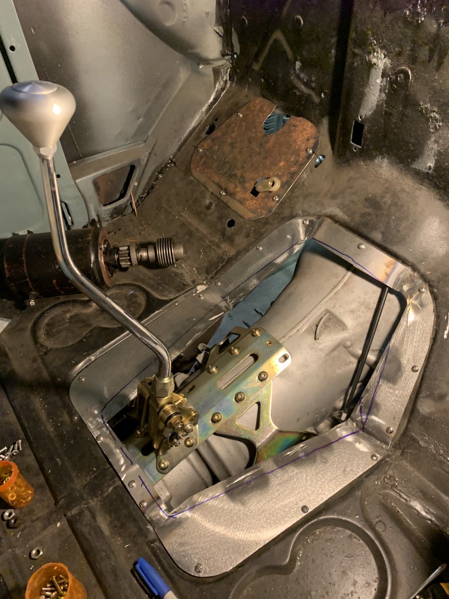 I have spent the last two days on the heater installation. First, I had to move it to the right so there was room for the gas pedal. In doing so the firewall has a 1.5” indentation into the cab so I needed a block on the right side of the heater. I could not find the bolts I needed for the block side of the heater box install so temporarily I am using all thread which I had around. Now it was time to drill holes into the firewall. Made up a cardboard template with a piece of 1x2 wood on the one side that is 1.5” thick .... I drilled one of the three holes for the left side but now I did not have a way to hold the heater up, get it level, and drill the rest of the holes. So, with some scrap lumber I built a shelf to support the heater so I could play with the heater to get it into position .... This was supported well enough in the front, back, and in the middle so I could lean on it and do whatever without things moving around. I was able to drill the holes right where I needed them as the shelf was nearly spot on with a shim underneath ..... The all thread has proven to be a pain but they will come out once I get the correct bolts. I had the heater in and our multiple times checking things and drilling just a few holes at a time until it was done ..... I put some firewall insulation behind it, ran the vacuum lines and installed the vacuum switch for the defroster on the unit. The heater hose supplied with it fortunately slips inside the stock Ford defroster hose so once I have insulated up under the dash and stuff, I will combine the hoses and reinstall the glove box. It seems like I spent a whole lot of time for just one thing but that’s hot rodding. Rome wasn’t built in a day and time is something I have right now so I am just going to keep chipping away at stuff ...