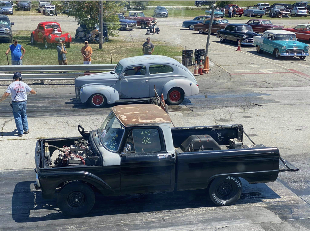 I’ve had this 40 for approx 10 years now, it was my first prewar car and led me to the Hamb while searching for info about the 40 fords. After I purchased the car from a fella in GA and hauled it back to KC, I found it has Hamb history. @Mutley responded to a thread seeking history of the car, advising me that his father had owned the car for a little bit in CA. He put me in touch with his dad and I was filled in on the history of the car back to approx 2003/2004 when it was built to run in Hamb drags. This car was brought back to life in St. Joe MO, went to CA and had a couple of caretakers there, then went to GA, and now back to KCMO where it belongs. Over the years I’ve had all the mechanicals worked over. 383/350 and 63 olds rear. The interior was done in CA and just needs some TLC at this point. The body has been loved on by a couple of different guys. I have always wanted it one color, and smoothed out. This thread will show the progression that I’ve done over the year. Here’s a couple pics of it running at an early Hamb drags, and a shot or two of the car before I got into it. If you know the car, have pics or stories from the Hamb drag days or any past please share! Hopefully Hamb drags will make a comeback some day and we can get it back down there looking a little better. red fender pics are the original builder running at MoKan, the primer pics are how the car was before getting into it.