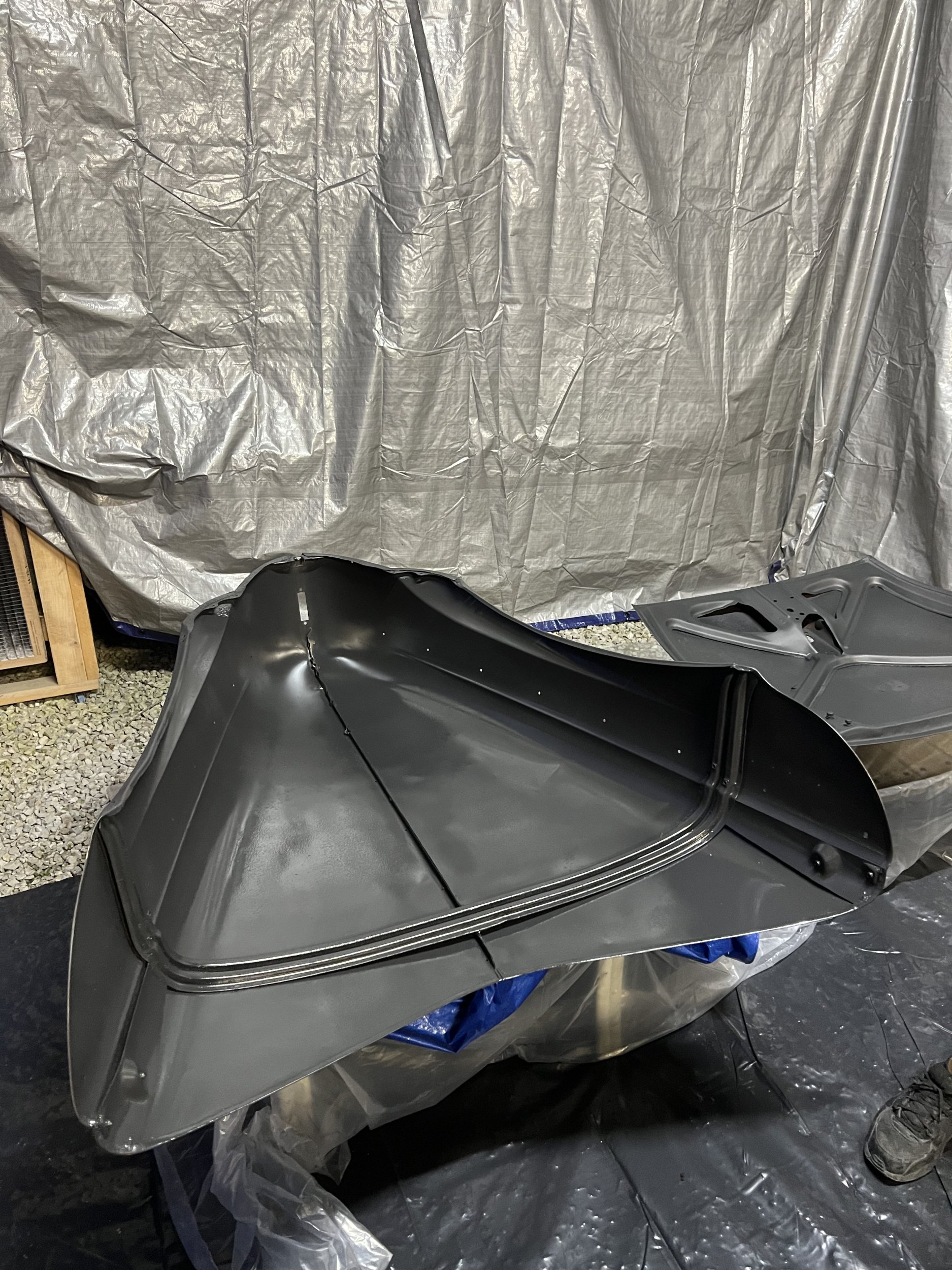 We have updates! It’s been a long few months, things have been moving. I’m not the best at taking pictures of progress; I have a few but pics of sanding, and a few small patches aren’t very fun, this is what we’re going for anyway. Primer was layed down and it was nice to see the 40 back to one shade of color, rather than the multi grays it was prior.