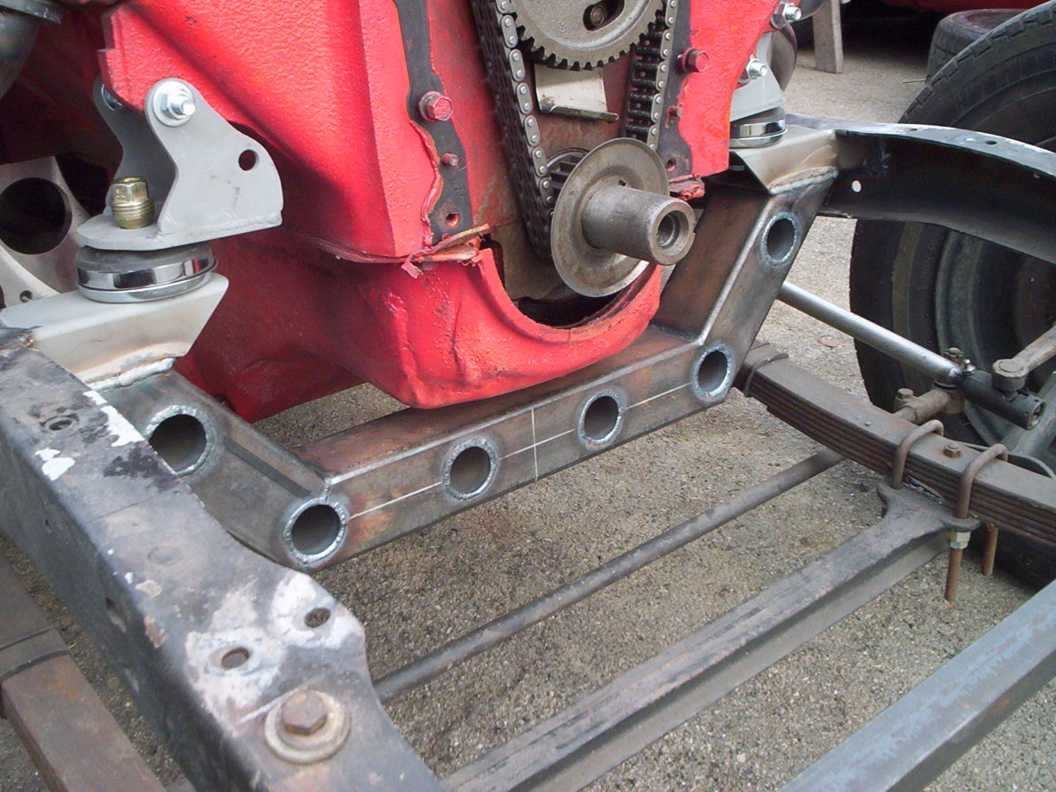 These are the captured nuts I fabbed to bolt on the rear fenders .The one on top is the original.Also mtrmnt crossmember ,and driveline loop..