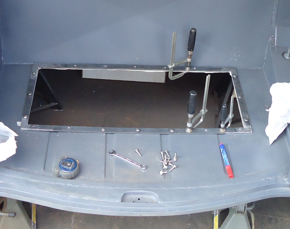 Sanded the top of the inner deck lid and gave it a fresh coat of primer. Mounted it in position and it fitted quite well. Still need some minor work in the right lower corner and a change in the radius of the bottom part will be required. I didn't expect it to fit perfectly on the bottom, as a lot of heat from welding has distorted it slightly. It's only a few millimeters, but still will need to be rectified in order for the top deck lid to fit perfectly. More next week.:D:D:D
