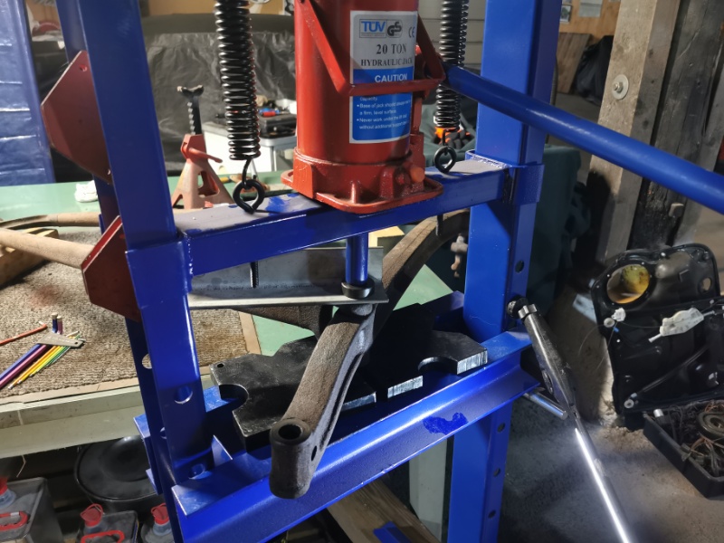The 32' axle has been disassembled, the spindles are good for further use, I pressed the perches out, with heat and a 20t press, it made a good bang, unfortunately the threads have rusted away, but otherwise it is amazing that every screw could be turned and left its place, I think the axle has been lying outside for a very long time and there is still so much usable, great. Greetings Harald