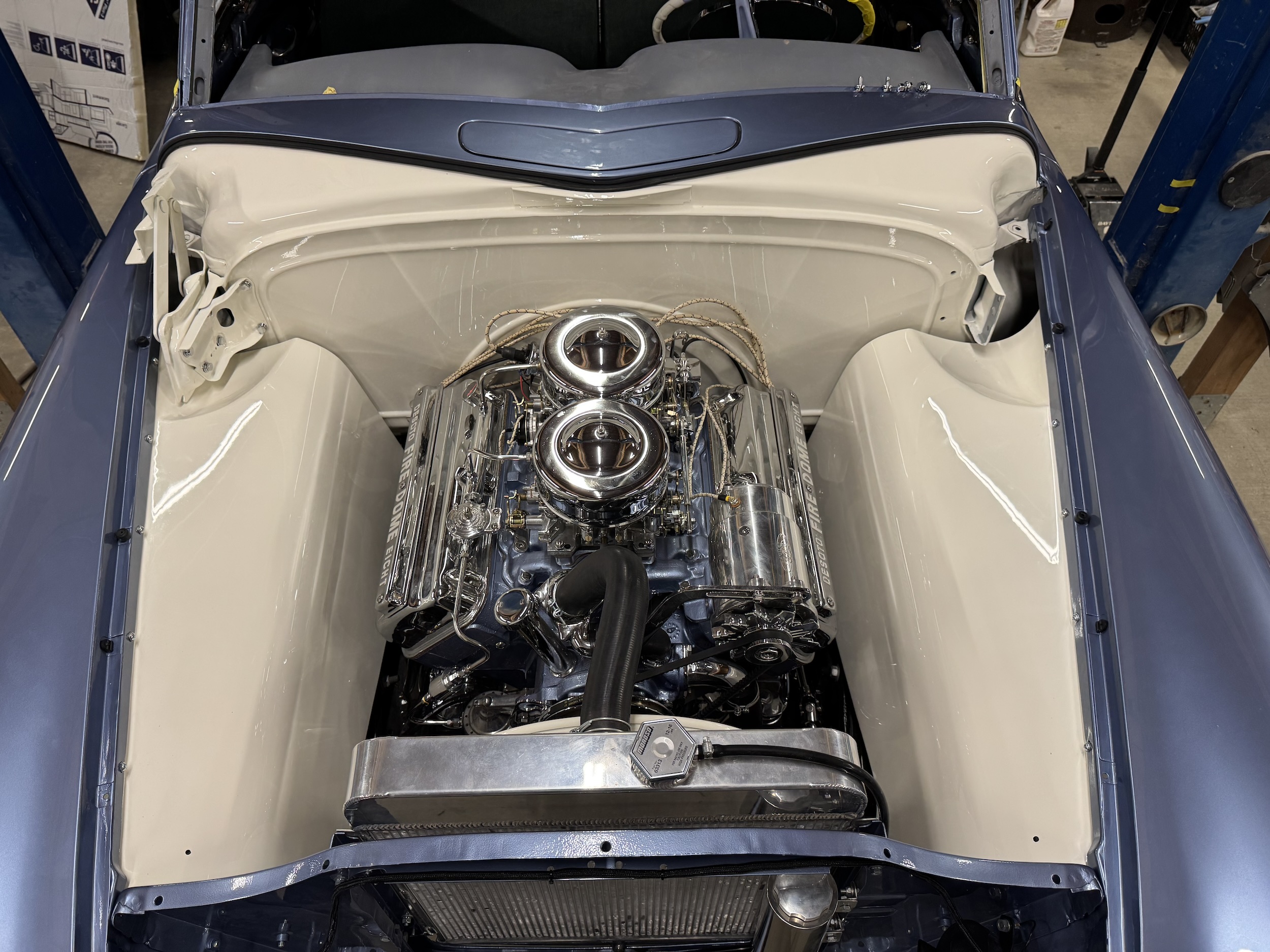 Hood on. Deck lid on. Some inner fenders in. There's still some temporary hardware here and there that needs to be swapped with shiny stuff eventually.