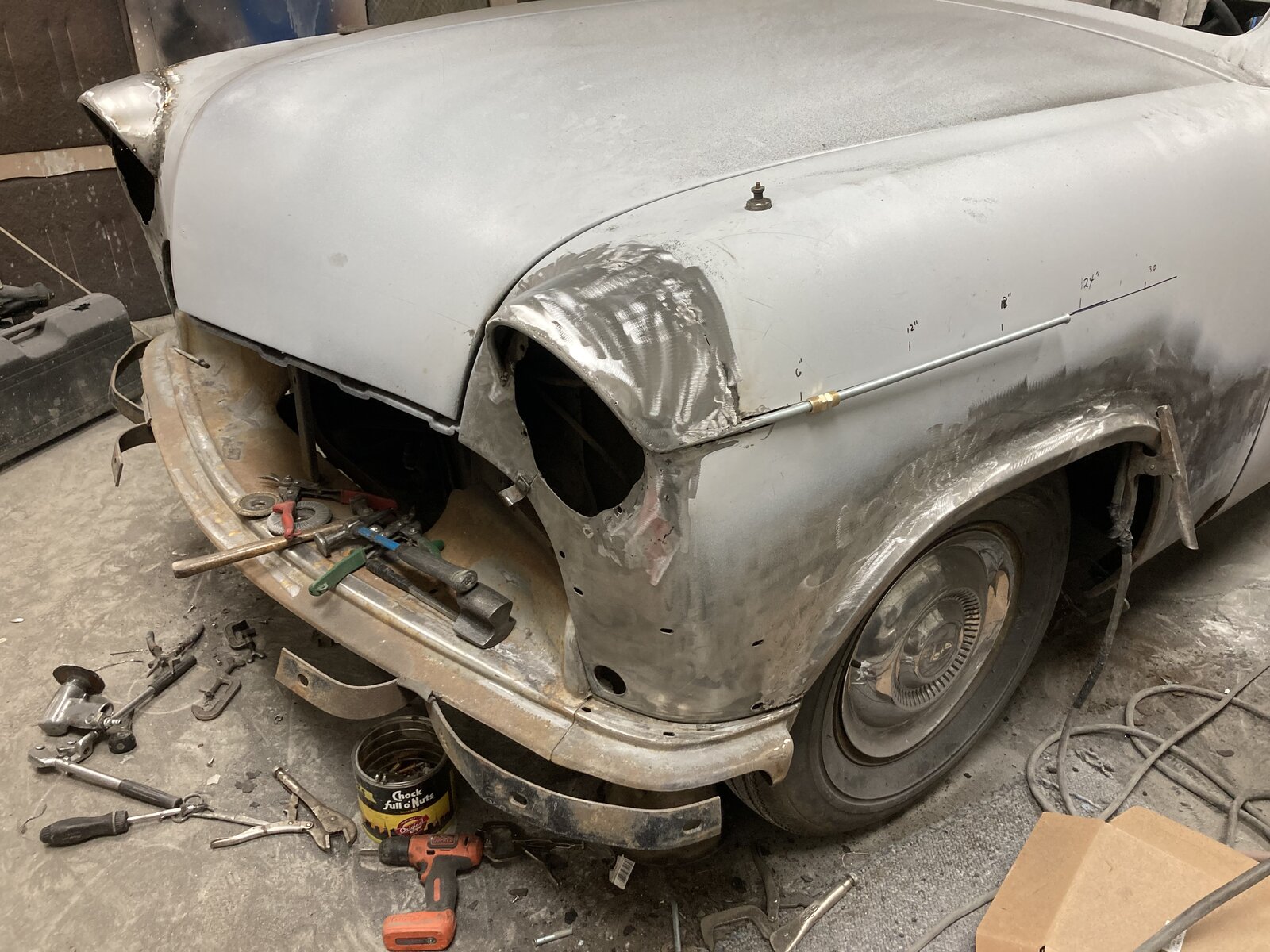 I am waiting to see the finished product. So far what I am seeing, while skillfully done, is not in keeping with the overall styling theme of the "shoebox" Ford.