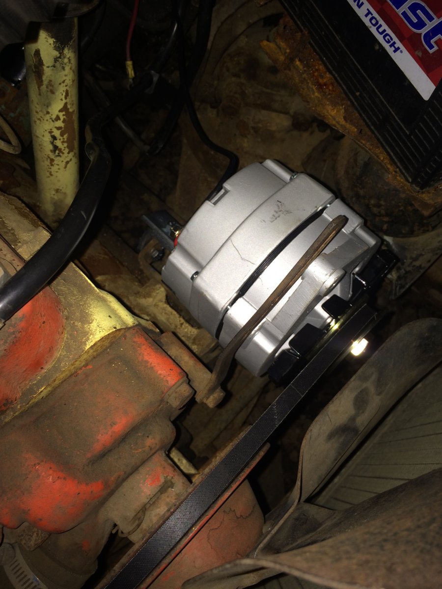 So I got my 6v alternator the other day and finally got around to putting it in and getting a bigger belt. I'm gonna have to make a different upper bracket as the oem one doesn't fit